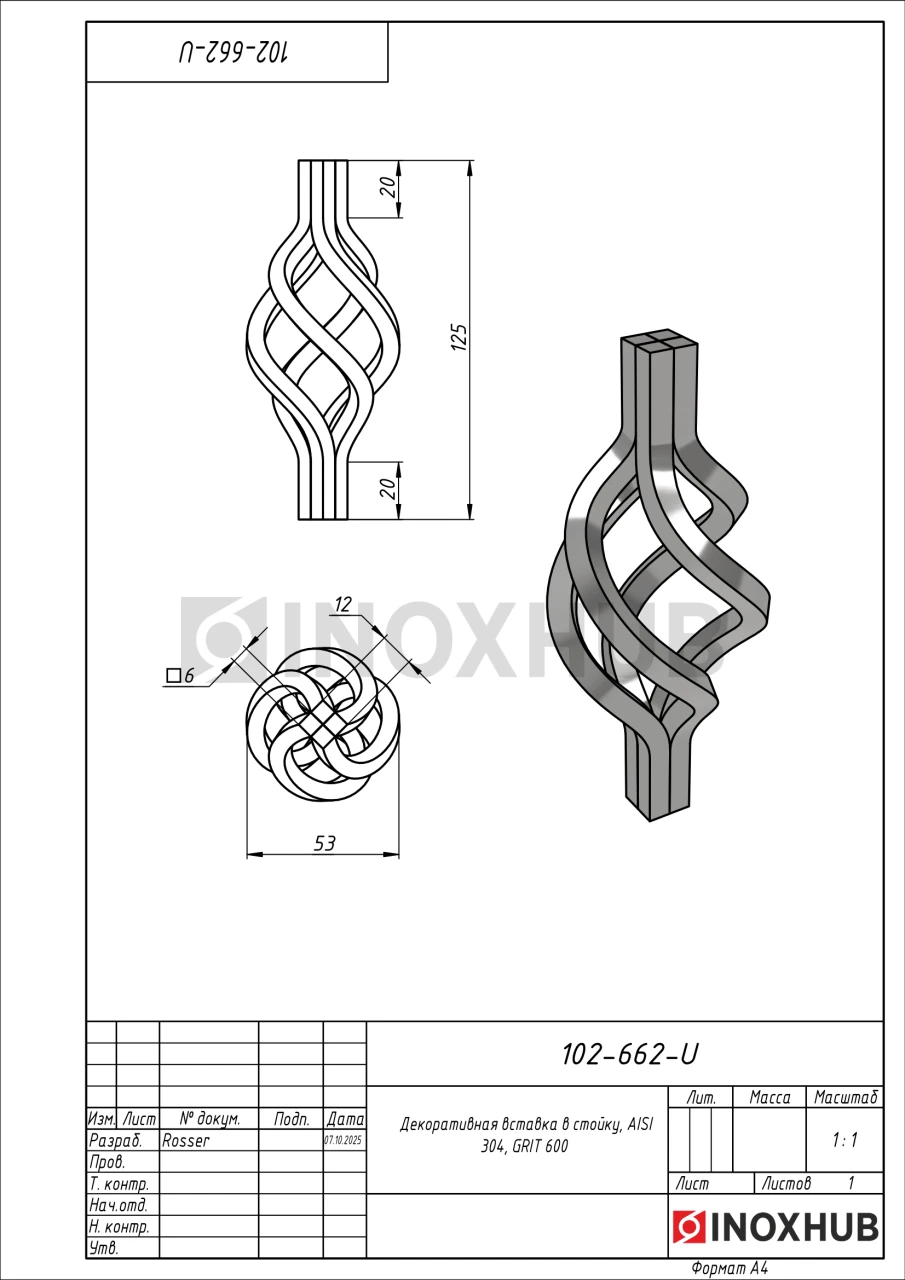 Декоративная вставка в стойку, AISI 304, GRIT 600 в продаже. Оперативная доставка со склада в Москве. Все товары соответствуют стандартам качества.