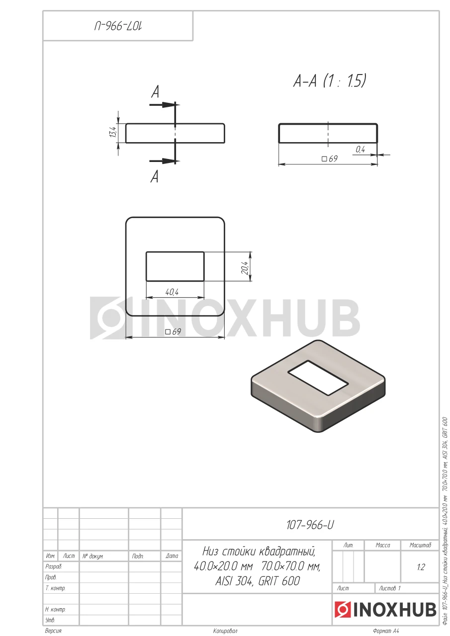 Низ стойки квадратный, 40.0×20.0 мм / 70.0×70.0 мм, AISI 304, GRIT 600 в продаже от 3.76 Br/шт. Оперативная доставка со склада в Москве. Все товары соответствуют стандартам качества.