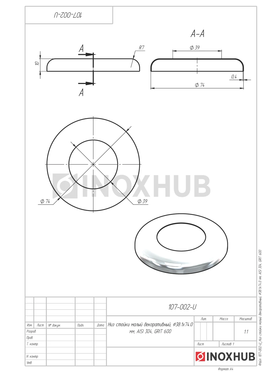 Низ стойки малый декоративный, Ø38.1×74.0 мм, AISI 304, GRIT 600 в продаже от 1.06 Br/шт. Оперативная доставка со склада в Москве. Все товары соответствуют стандартам качества.