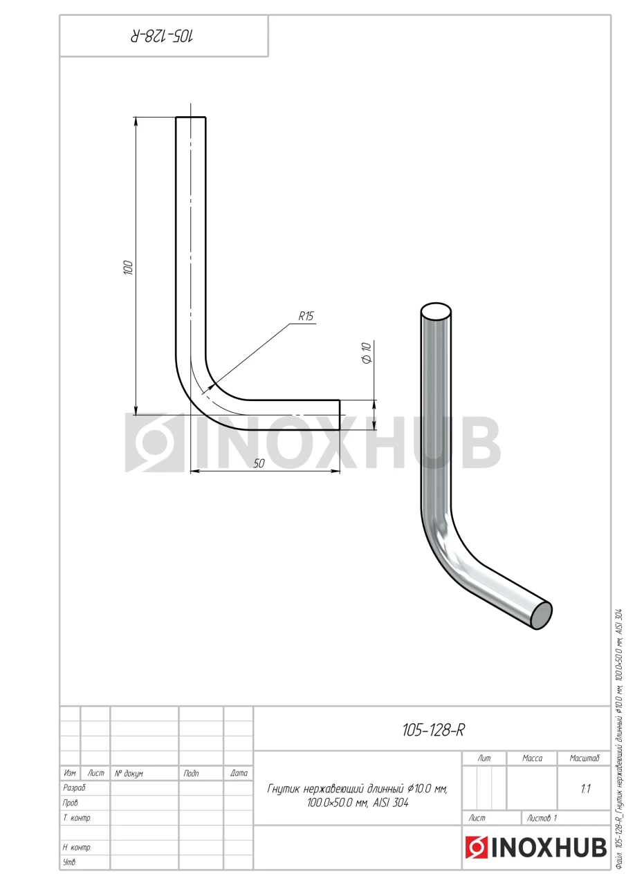 Гнутик нержавеющий длинный Ø10.0 мм, 100.0×50.0 мм, AISI 304 в продаже. Оперативная доставка со склада в Москве. Все товары соответствуют стандартам качества.