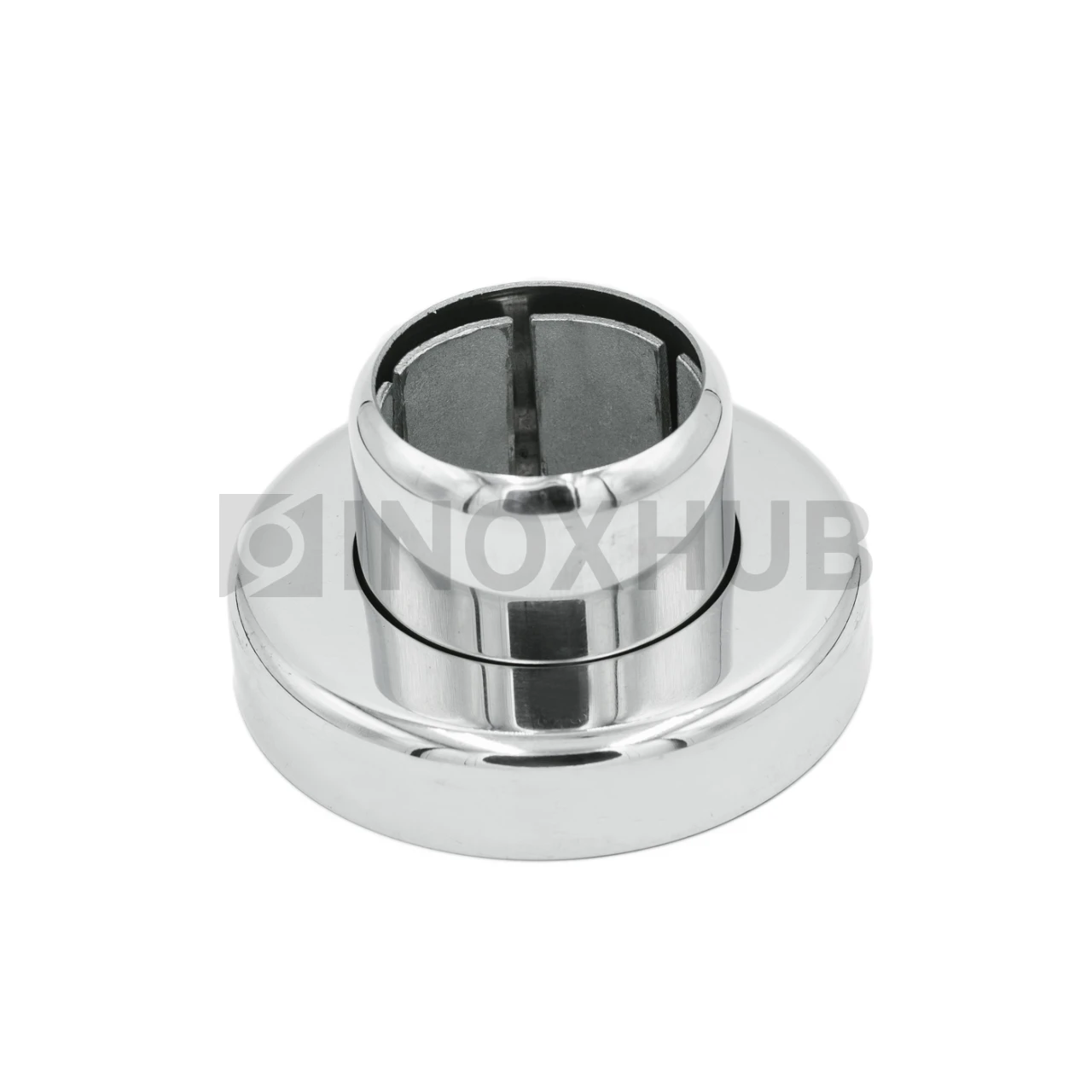 Применение. Цанговый фланец незаменим для установки стоек самосборных ограждений диаметром 42,4 мм в пол. Монтируется в плитку, бетон или дерево.