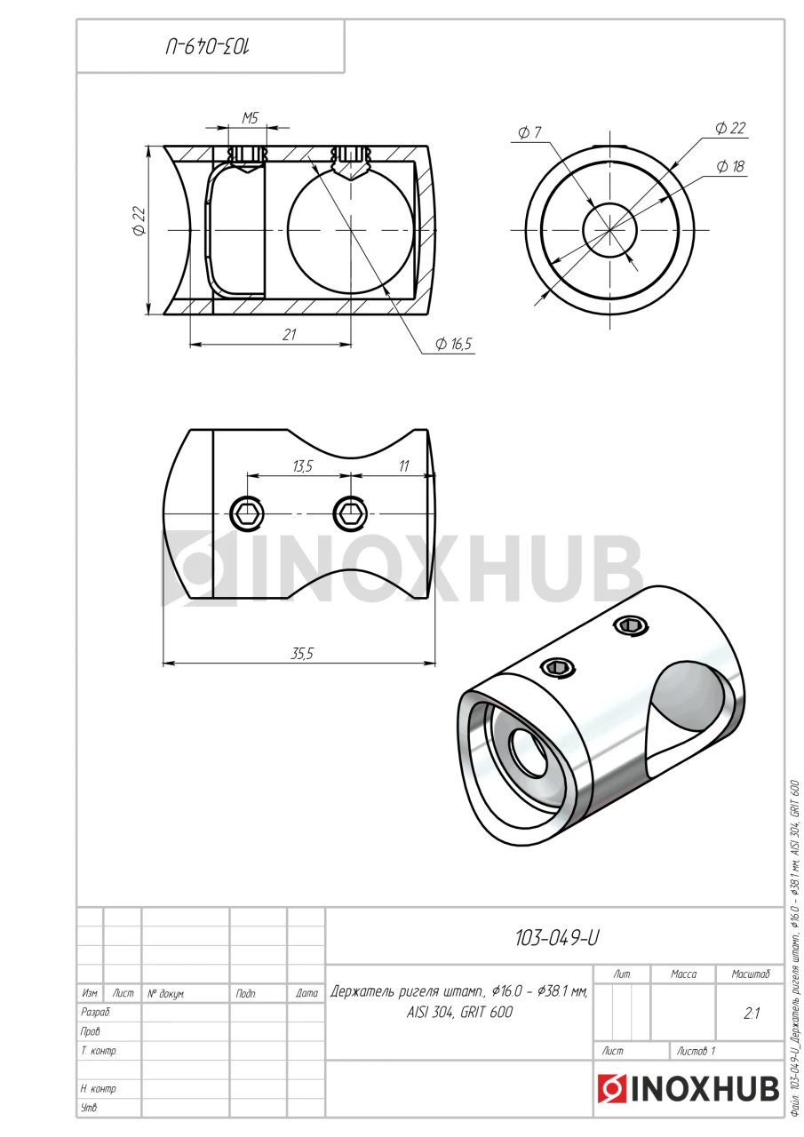 Держатель ригеля штамп., Ø16.0 - Ø38.1 мм, AISI 304, GRIT 600