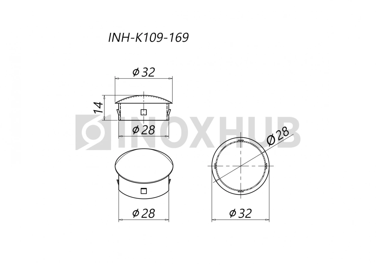 Штампованная забивная заглушка для труб диаметром 32 мм изготовлена из нержавеющей стали AISI 304. Подходит для установки на улице. Деталь имеет глянцевую полированную поверхность — GRIT 600.