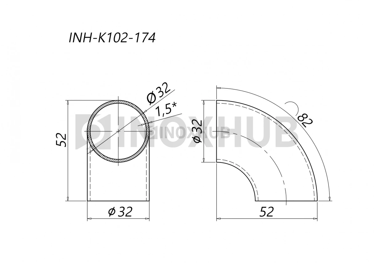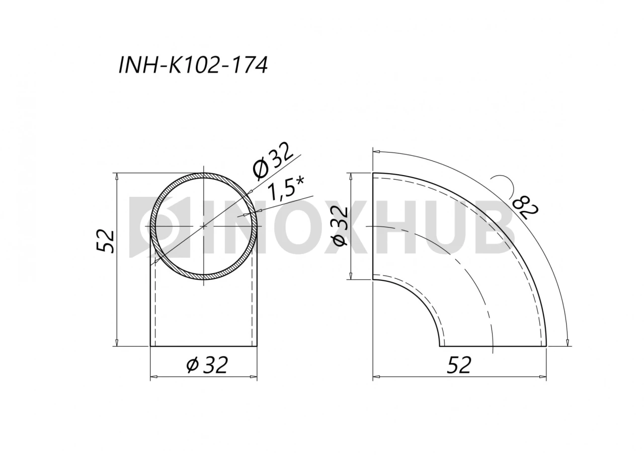 Применение. Отвод нужен для поворота поручня диаметром 32 мм со стенкой толщиной 1,5 мм.