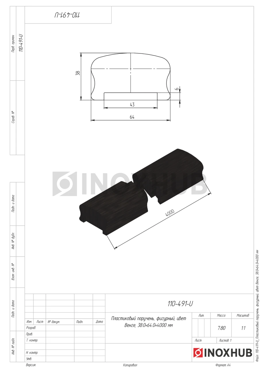 Пластиковый поручень, фигурный, цвет Венге, 38.0×64.0×4000 мм в продаже. Оперативная доставка со склада в Москве. Все товары соответствуют стандартам качества.