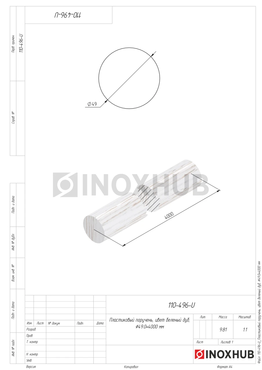 Пластиковый поручень, цвет беленый дуб, Ø49.0×4000 мм в продаже от 26.27 Br/пог. м. руб. Оперативная доставка со склада в Москве. Все товары соответствуют стандартам качества.