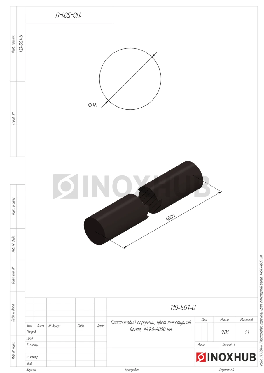 Пластиковый поручень, цвет текстурный Венге, Ø49.0×4000 мм в продаже от 26.73 Br/пог. м. руб. Оперативная доставка со склада в Москве. Все товары соответствуют стандартам качества.