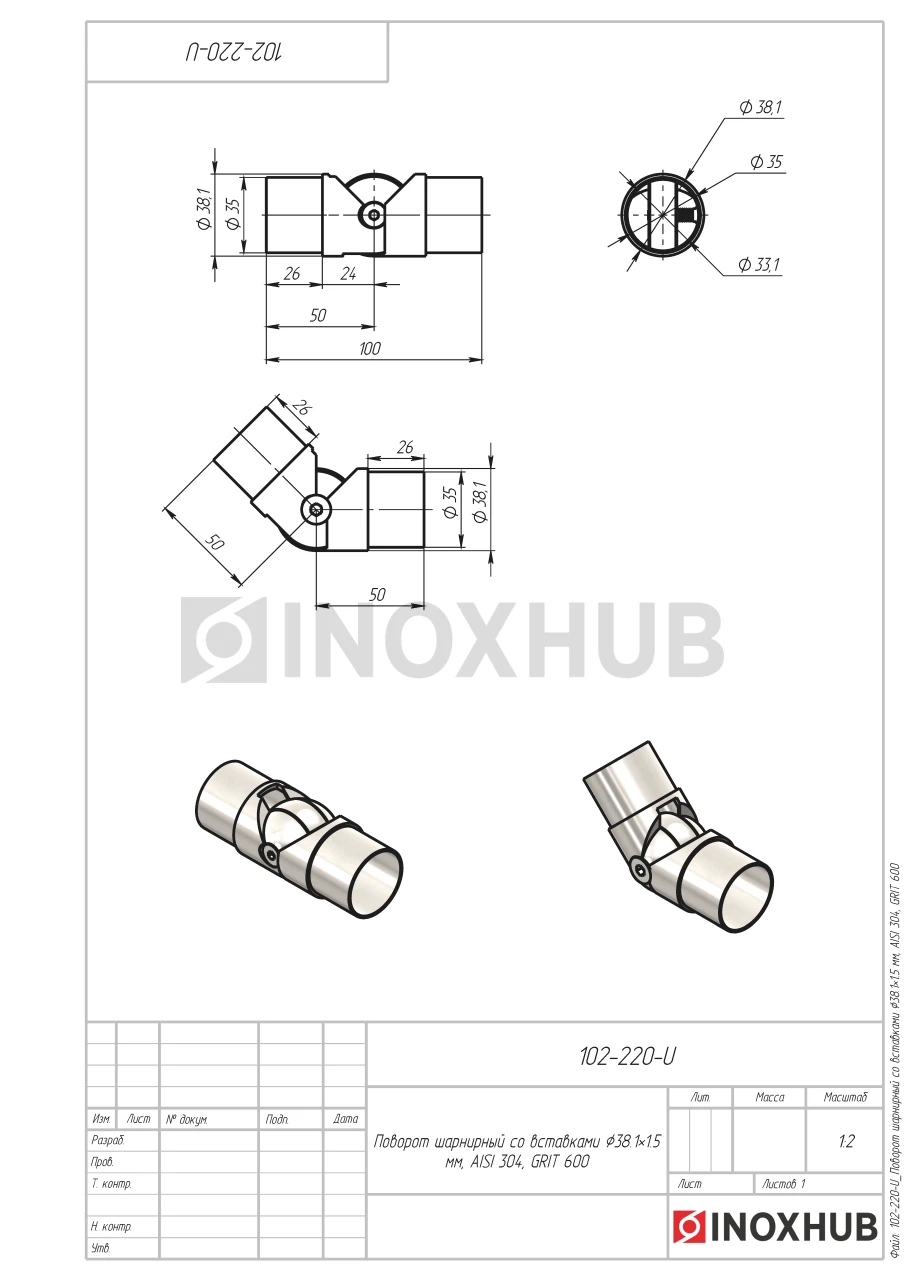 Поворот шарнирный со вставками, Ø38.1×1.5 мм, AISI 304, GRIT 600 в продаже. Оперативная доставка со склада в Москве. Все товары соответствуют стандартам качества.
