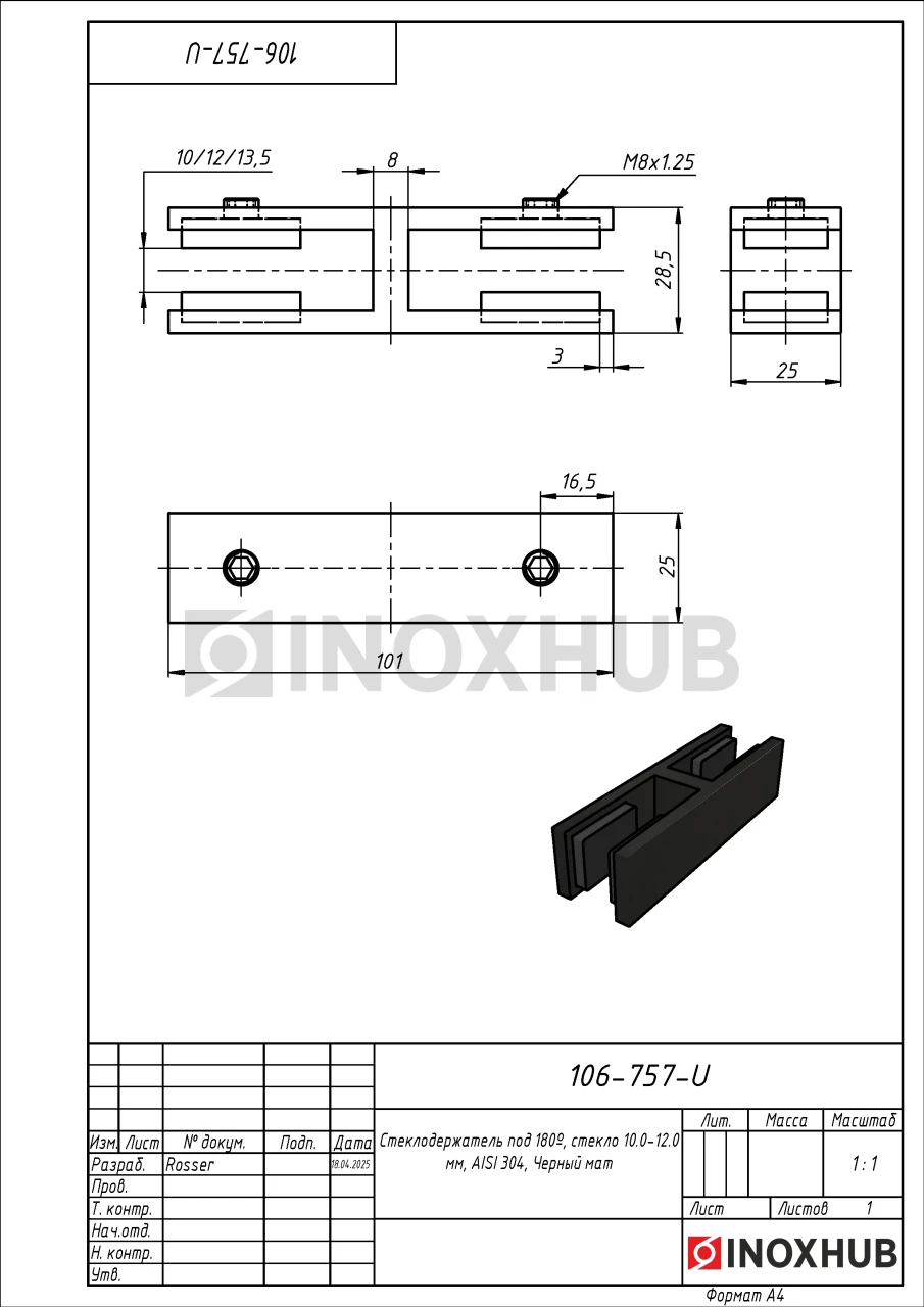 Стеклодержатель под 180º, стекло 10.0-12.0 мм, AISI 304, Черный мат в продаже от 58.67 Br/шт. Оперативная доставка со склада в Москве. Все товары соответствуют стандартам качества.