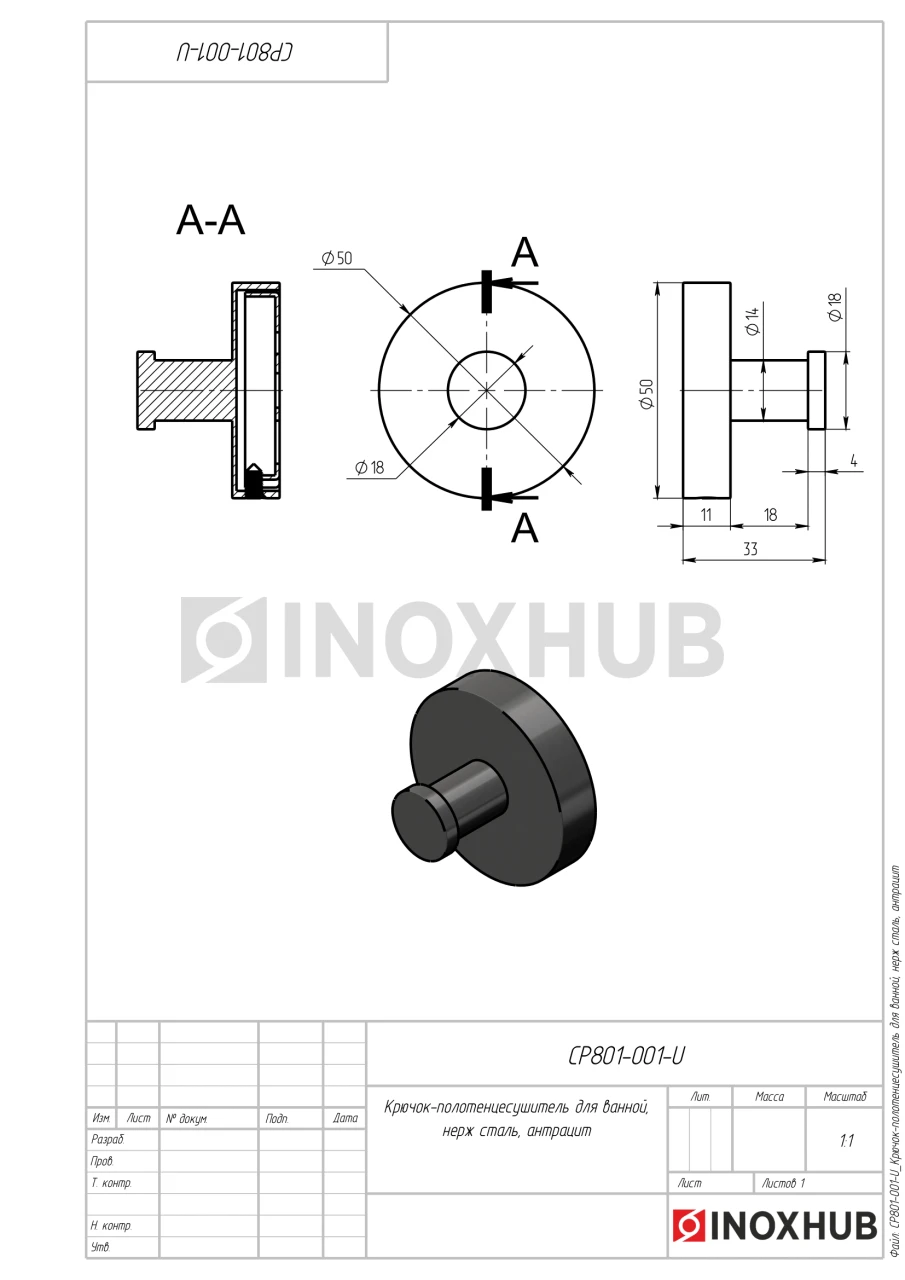 Крючок-полотенцесушитель для ванной, нерж сталь, антрацит в продаже. Оперативная доставка со склада в Москве. Все товары соответствуют стандартам качества.