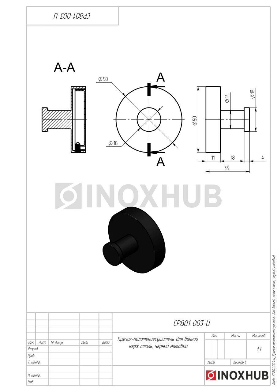 Крючок-полотенцесушитель для ванной, нерж сталь, черный матовый
