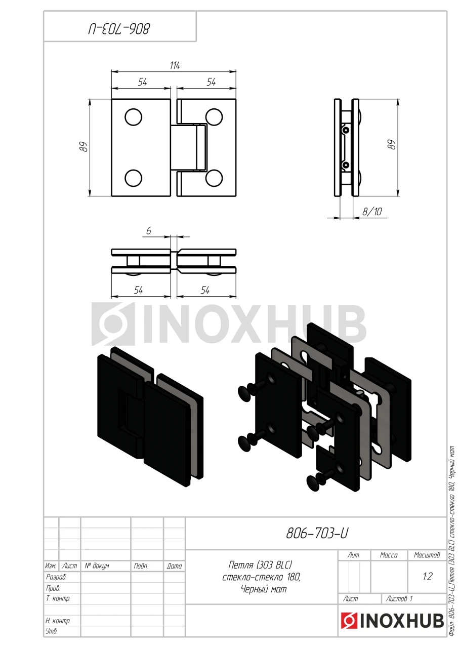 Петля (303 BLC) стекло-стекло 180°, нерж. сталь Черный мат