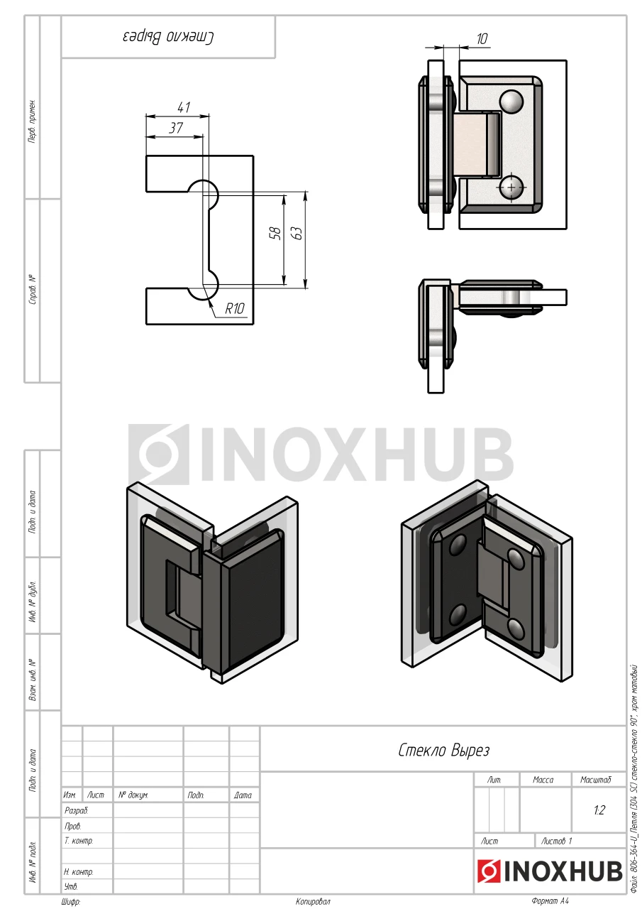 Сборка и монтаж. В комплекте поставляется все необходимое для установки. Для прочной фиксации стекла используются прокладки. Соберите петлю и подготовьте стеклопанели согласно схемам на чертежах.