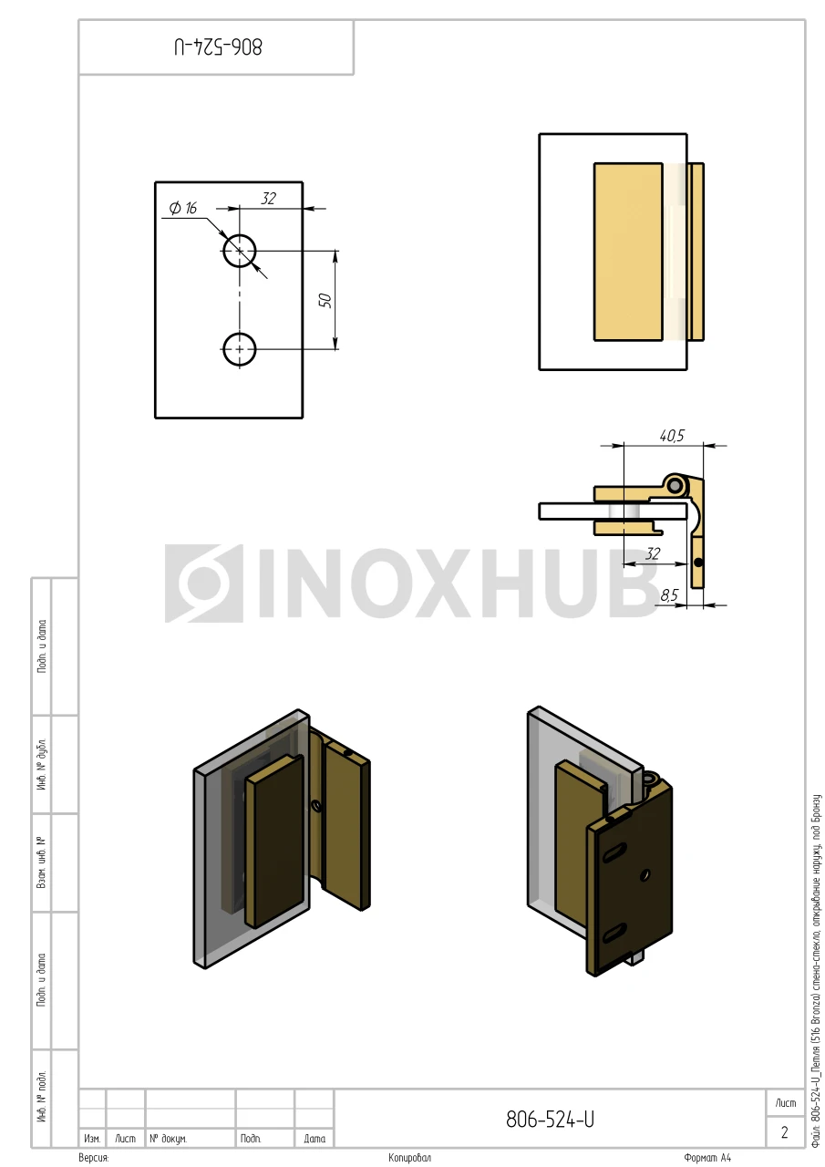 Петля (516 Bronza) стена-стекло, открывание наружу, под Бронзу