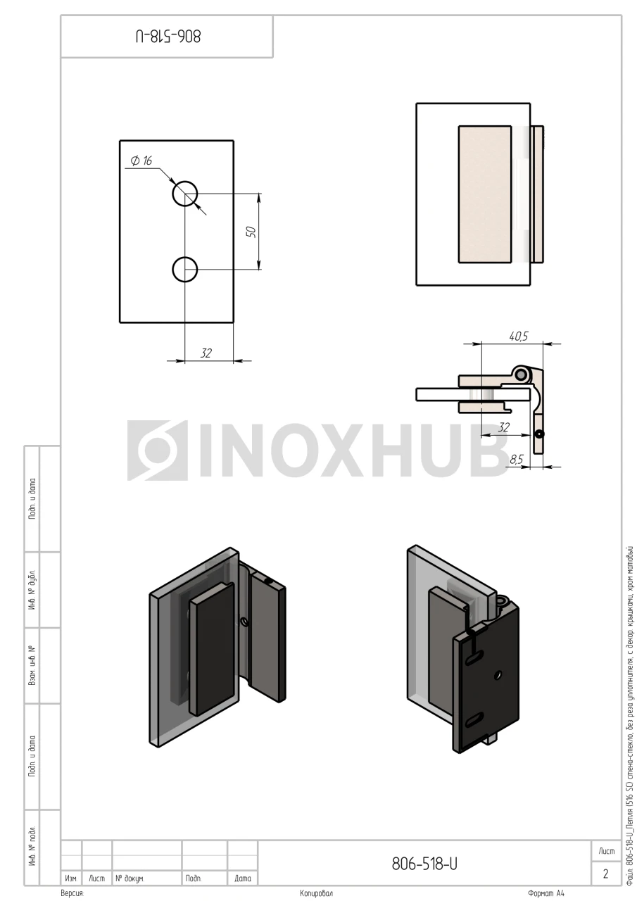 Сборка и монтаж. Подготовьте отверстия в стене и двери согласно чертежу. Петля не требует реза уплотнителя, все крепежные элементы и втулки поставляются в комплекте. Модель устанавливается на шестигранные винты. Декоративные крышки скрывают крепежные элементы.