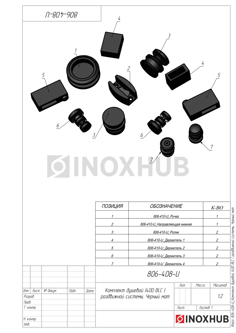 Комплект душевой (400 BLC) раздвижной системы, нерж. сталь Черный мат