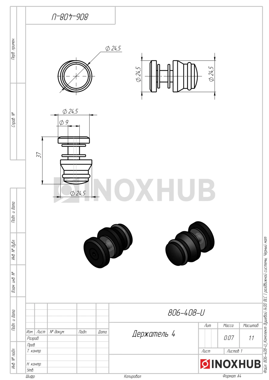 Комплект для установки раздвижных дверей изготовлен из нержавеющей стали AISI 304. Материал устойчив к воздействию влаги, не подвержен коррозии в условиях ванной комнаты. Черная матовая отделка стильно смотрится в интерьере, подчеркивает строгость и лаконичность дизайна.