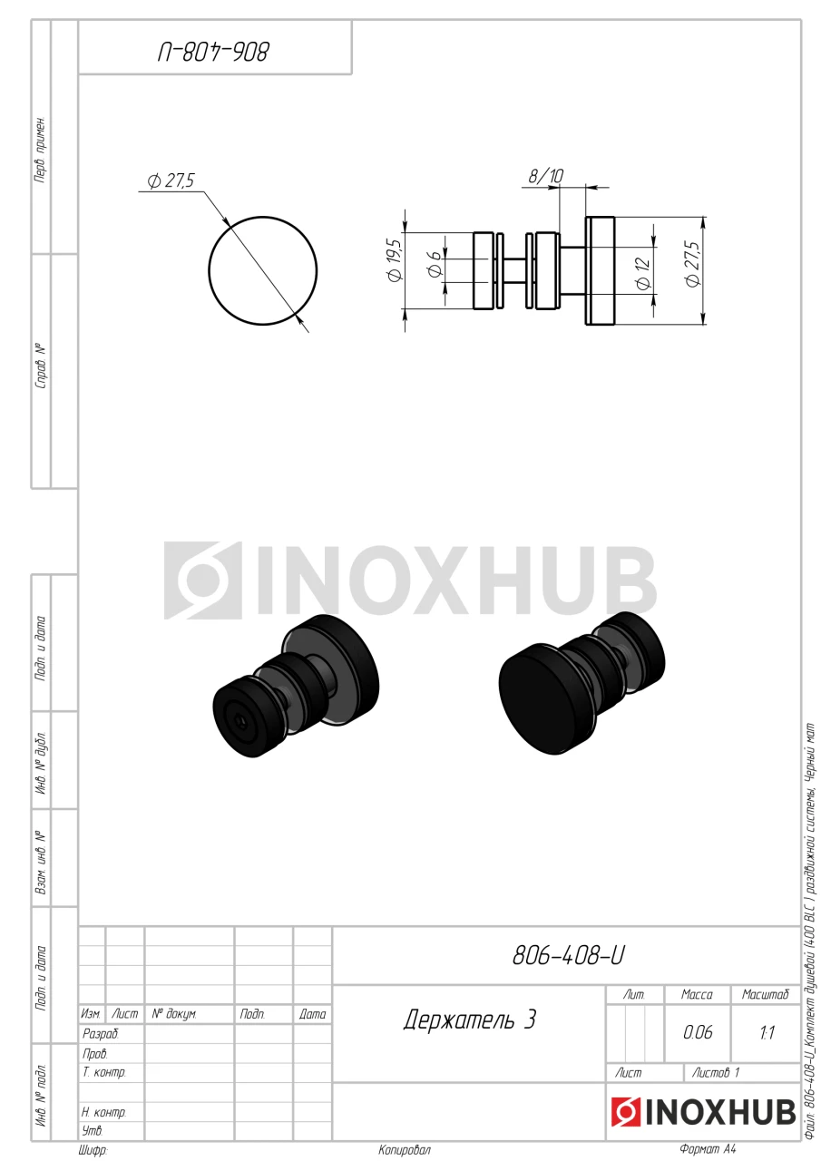 - Ручка двусторонняя тарельчатого типа диаметром 48 мм — 1 шт.