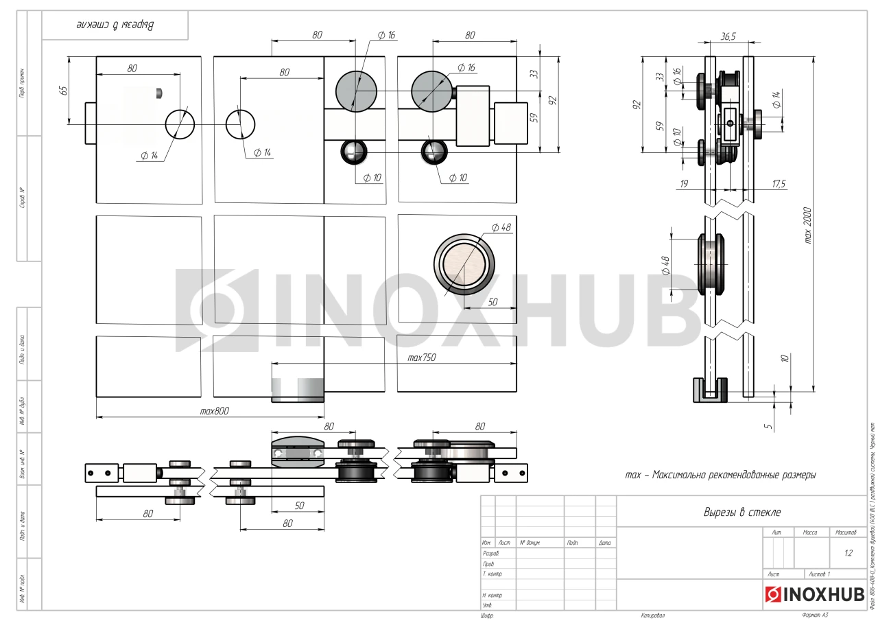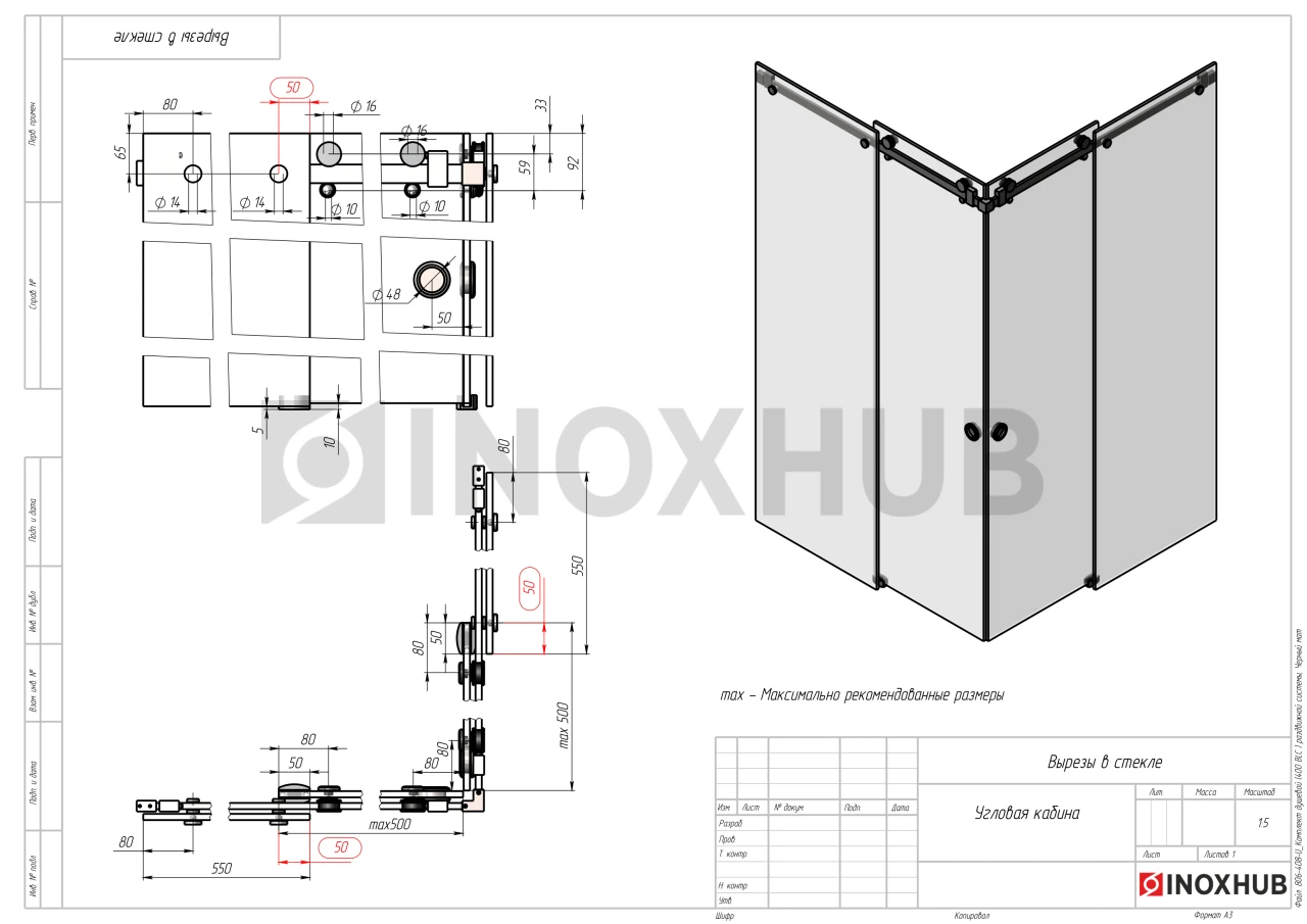 Все размеры деталей, вырезы в стекле, схемы для сборки указаны в чертежах.