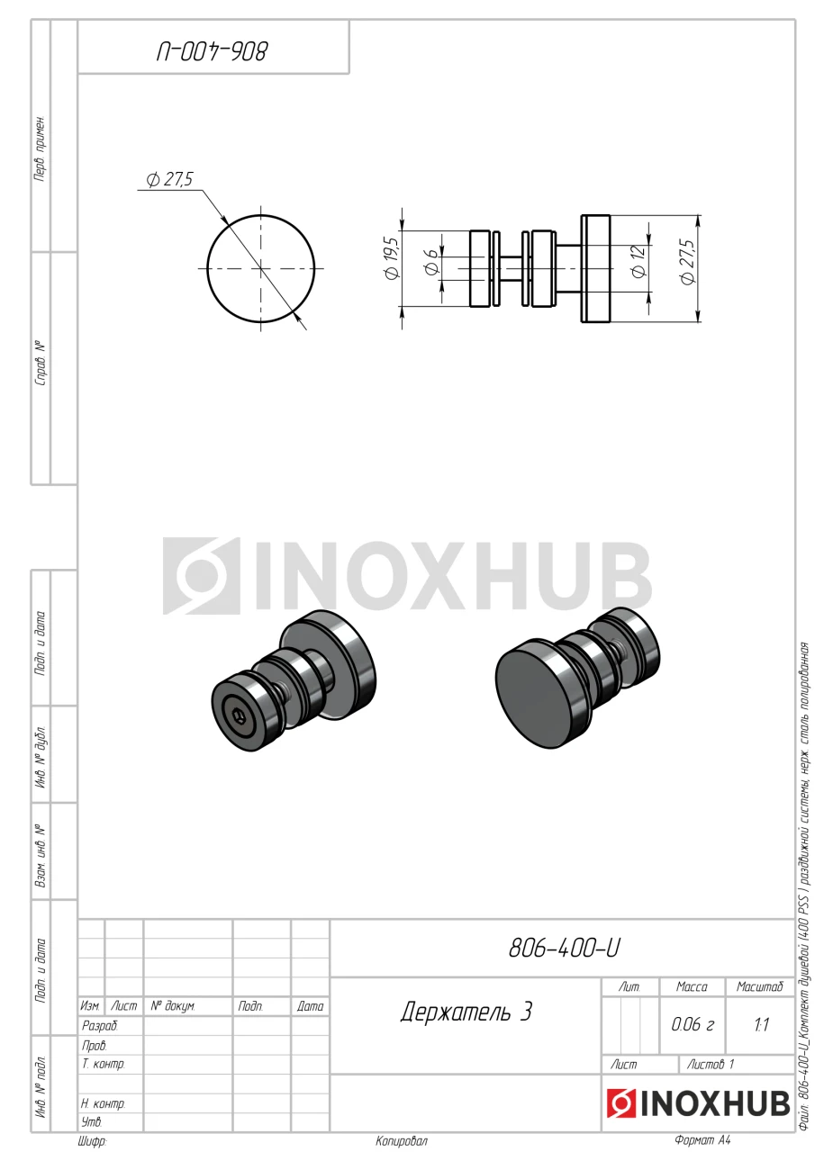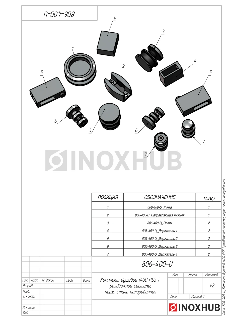Комплект душевой (400 PSS) раздвижной системы, нерж. сталь полированная