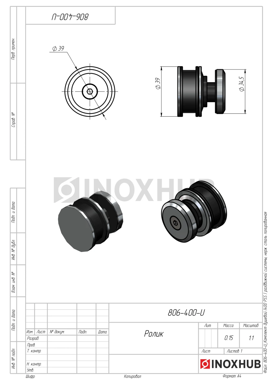 - Ручка двусторонняя тарельчатого типа диаметром 48 мм — 1 шт.
