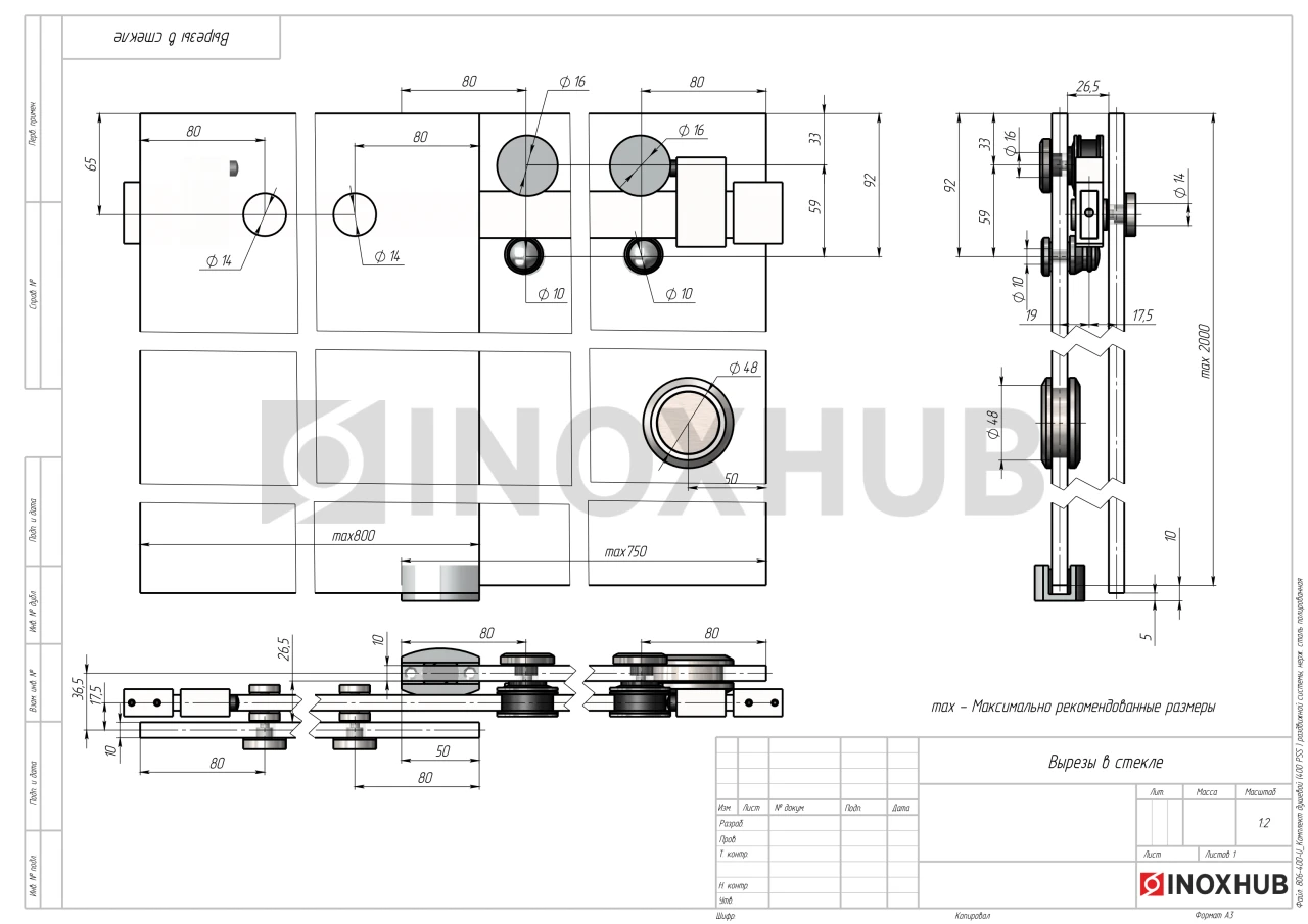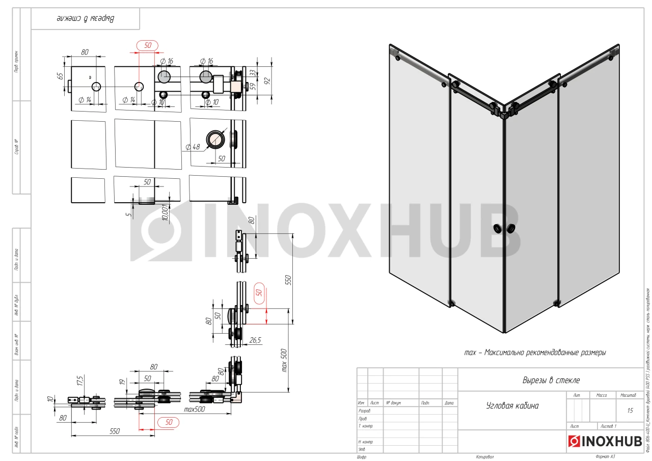 Все размеры деталей, вырезы в стекле, схемы для сборки указаны в чертежах.