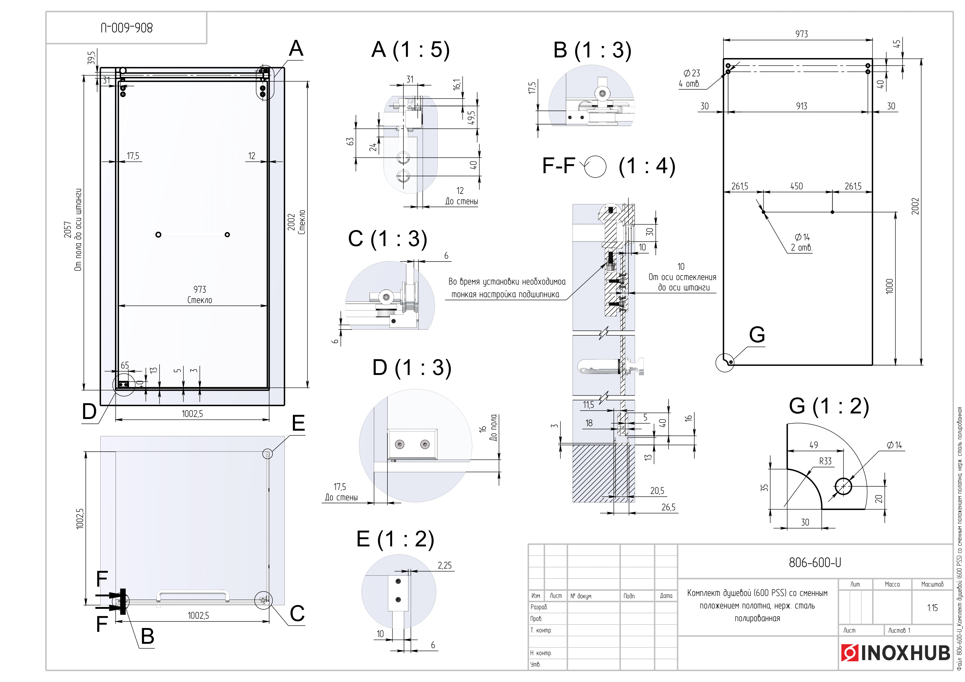 Комплект душевой (600 PSS) со сменным положением полотна, нерж. сталь полированная