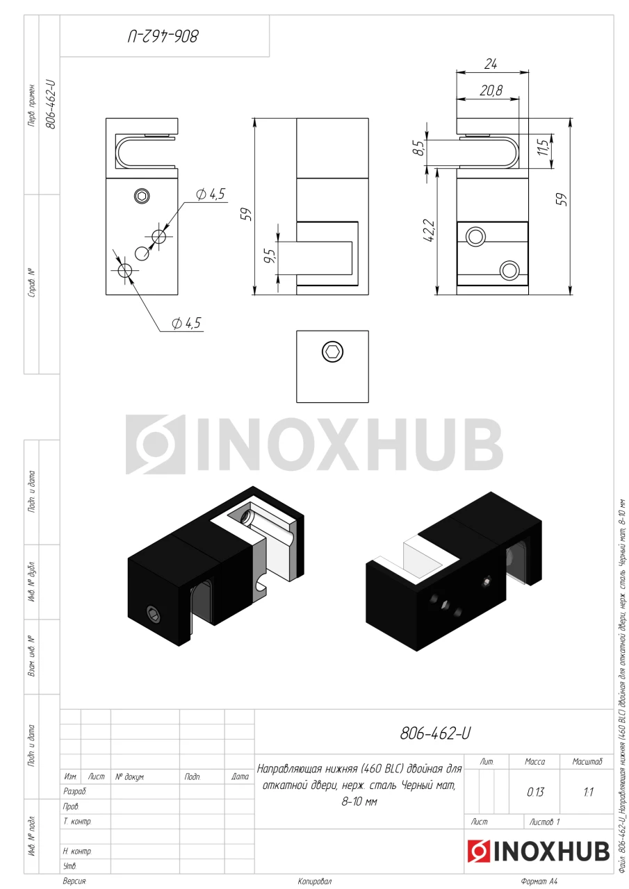 Направляющая нижняя (460 BLC) двойная для откатной двери, нерж. сталь Черный мат