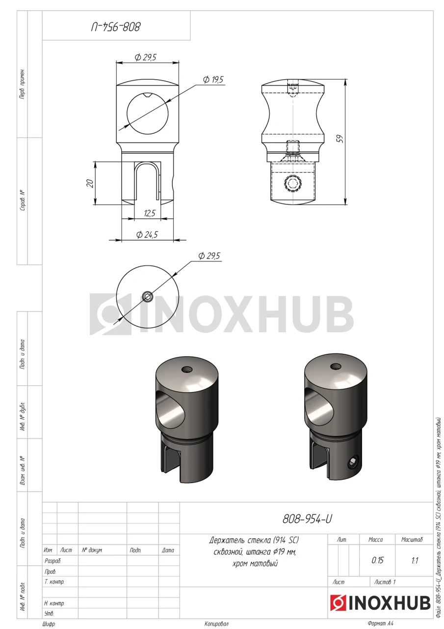 Держатель стекла (914 SC) сквозной, штанга Ø19 мм, матовый хром