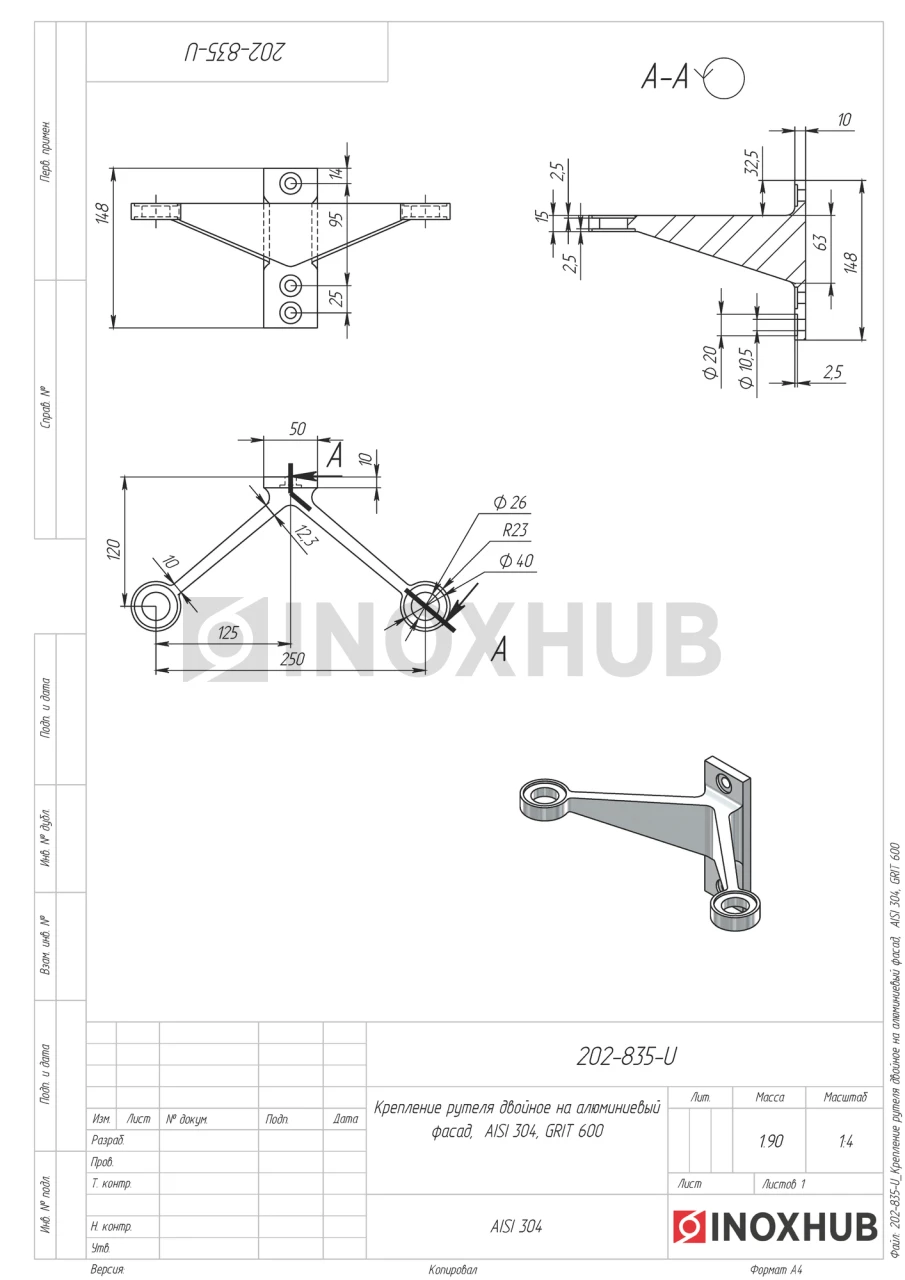 Крепление рутеля двойное на алюминиевый фасад, AISI 304, GRIT 600