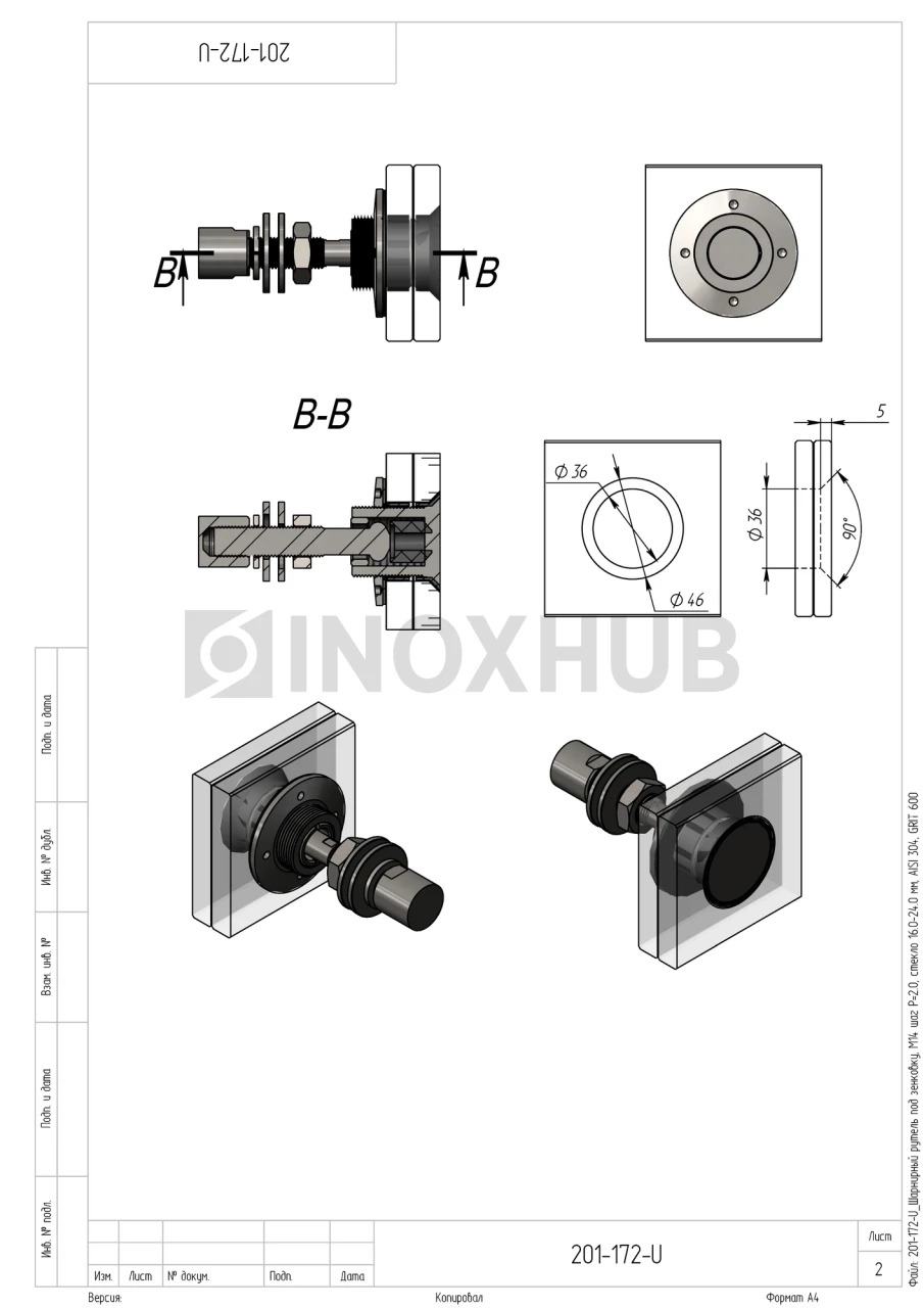 Шарнирный рутель под зенковку, М14 шаг Р=2, стекло 16.0-24.0 мм, AISI 304, GRIT 320