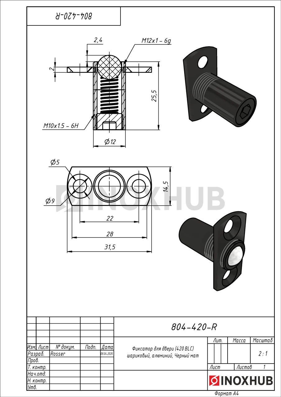 Фиксатор для двери (420 BLC) шариковый, алюминий, Черный мат