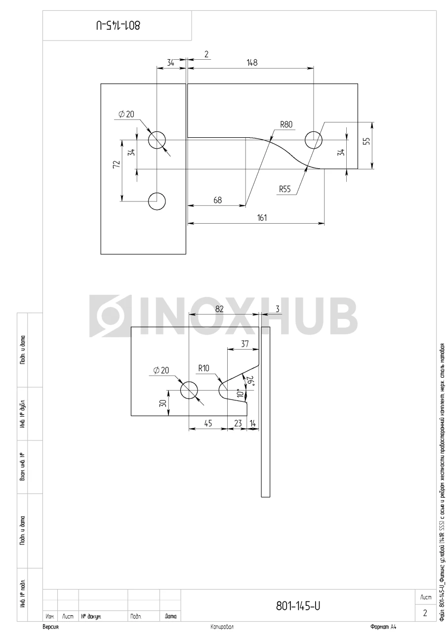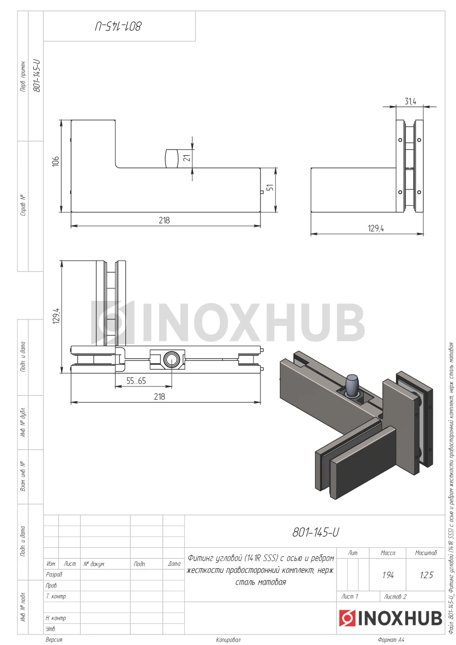 Фитинг угловой (141R SSS) с осью и ребром жесткости, правосторонний комплект, нерж. сталь матовая