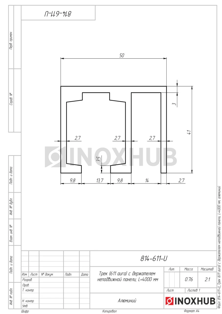 Трек (611-4000) с держателем неподвижной панели, L=4000 мм, Анодированный алюминий в продаже. Оперативная доставка со склада в Москве. Все товары соответствуют стандартам качества.