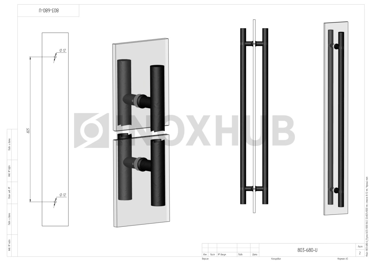 Ручка (633-1000 BLC) 32×825×1000 мм, стекло 8-12 мм, Черный мат