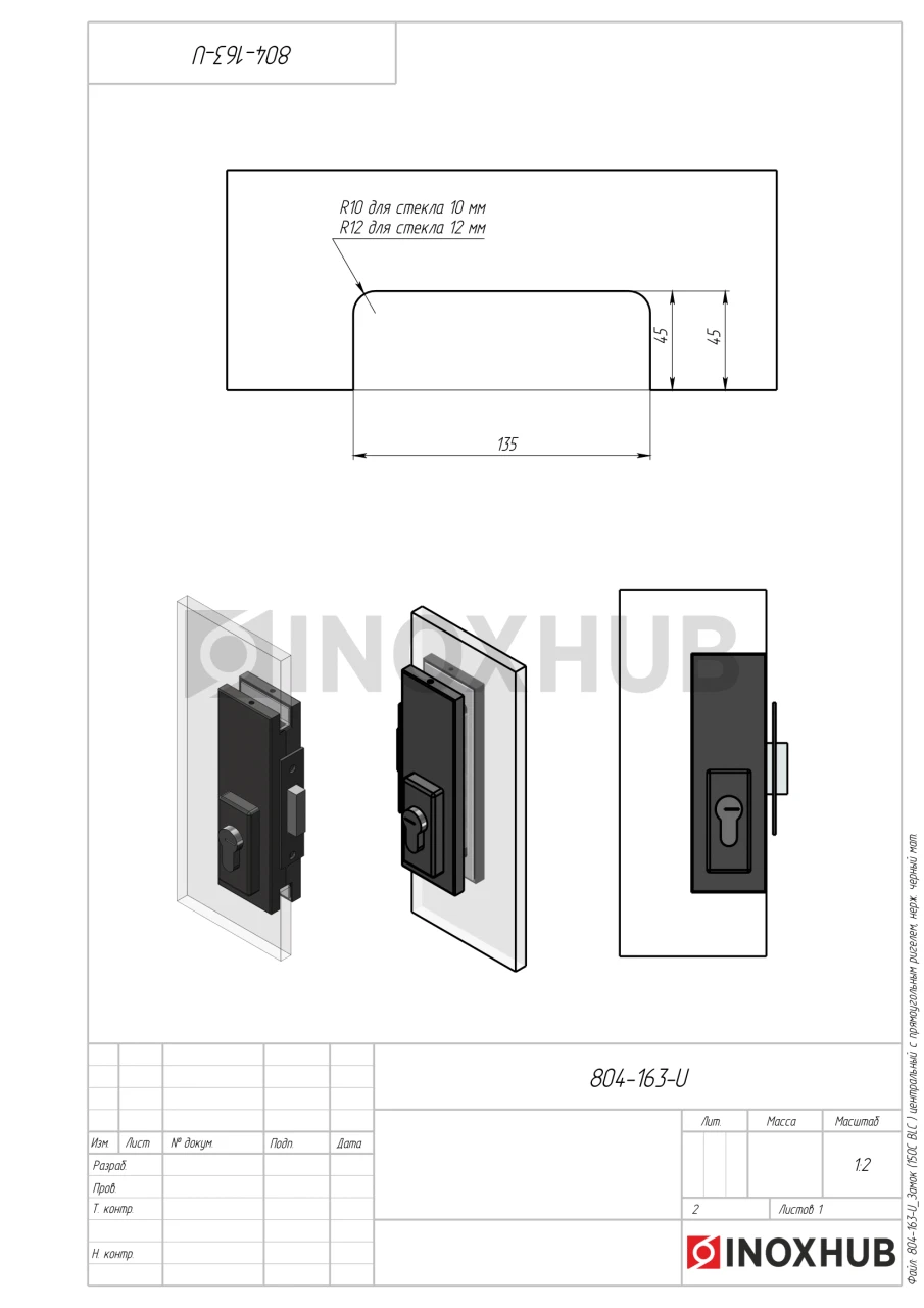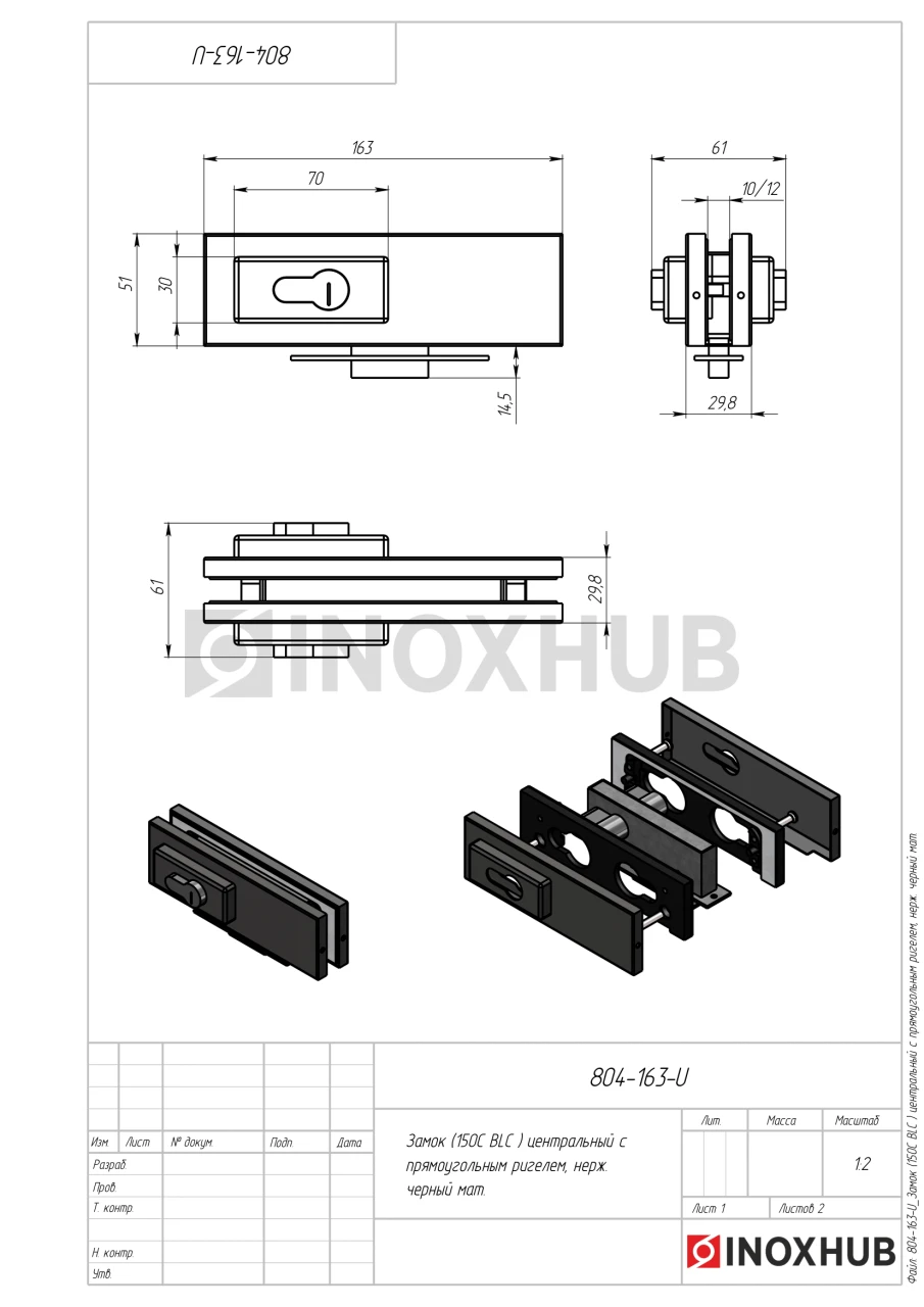 Замок (150С BLC) центральный с прямоугольным ригелем, Черный мат