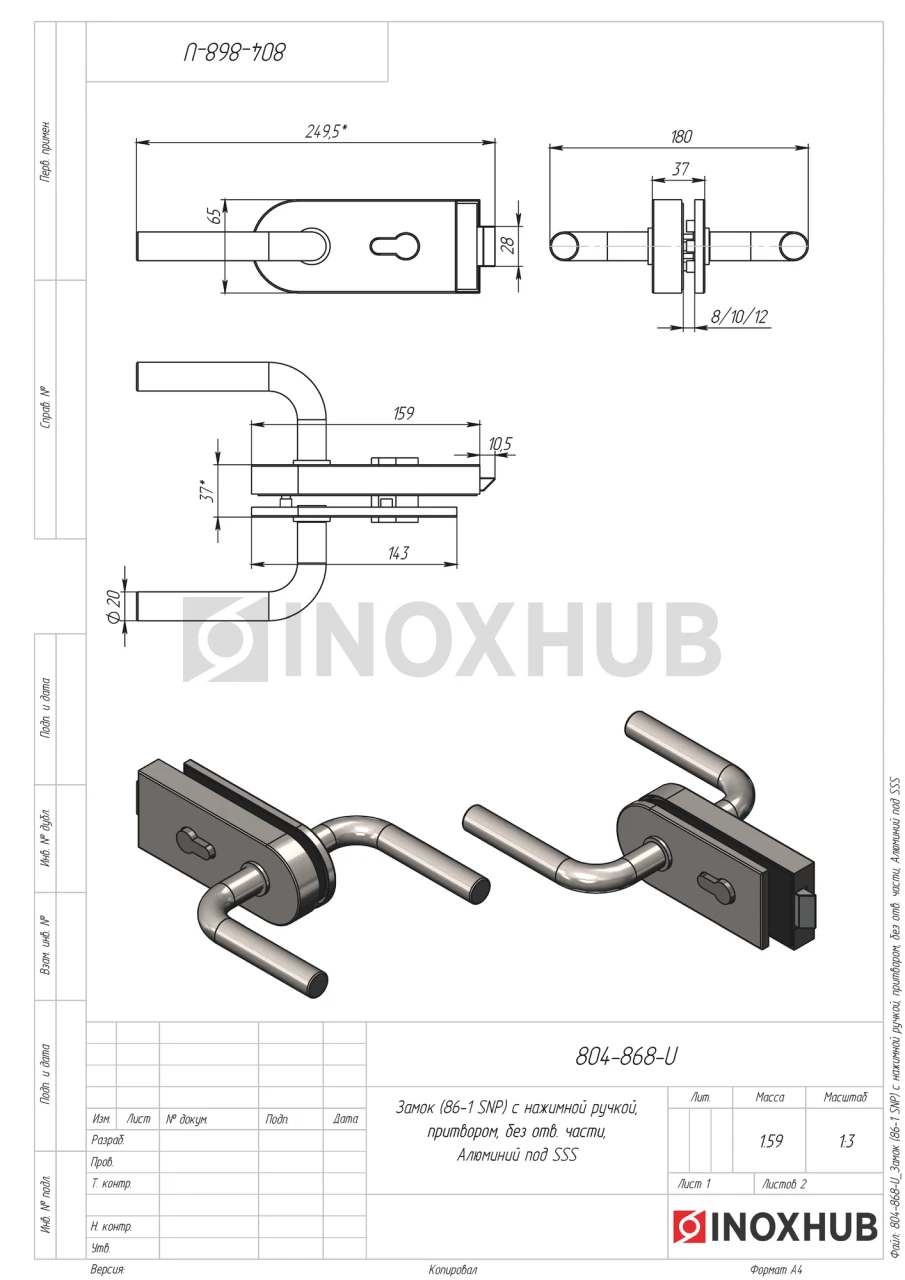 Замок (86-1 SNP) с нажимной ручкой, притвором, без отв. части, Алюминий под SSS в продаже. Оперативная доставка со склада в Москве. Все товары соответствуют стандартам качества.