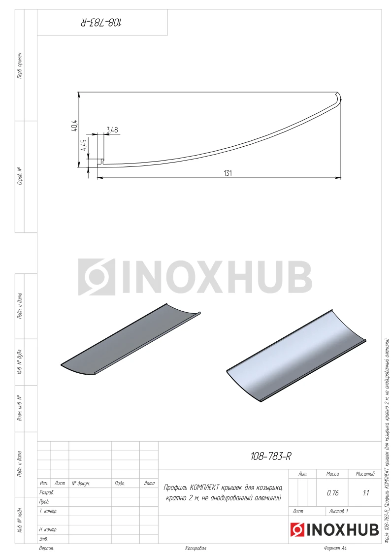 Профиль КОМПЛЕКТ крышек для козырька, кратно 2 м, не анодированный алюминий