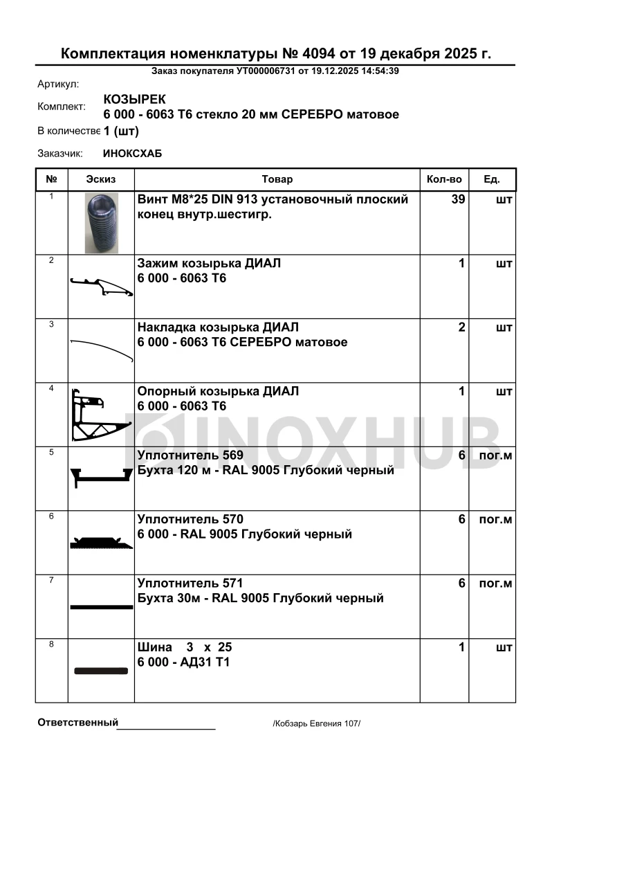 Профиль НАБОР для КОЗЫРЬКА с крышками (обновлённая версия), кратно 6 м, Анодированный алюминий в продаже. Оперативная доставка со склада в Москве. Все товары соответствуют стандартам качества.