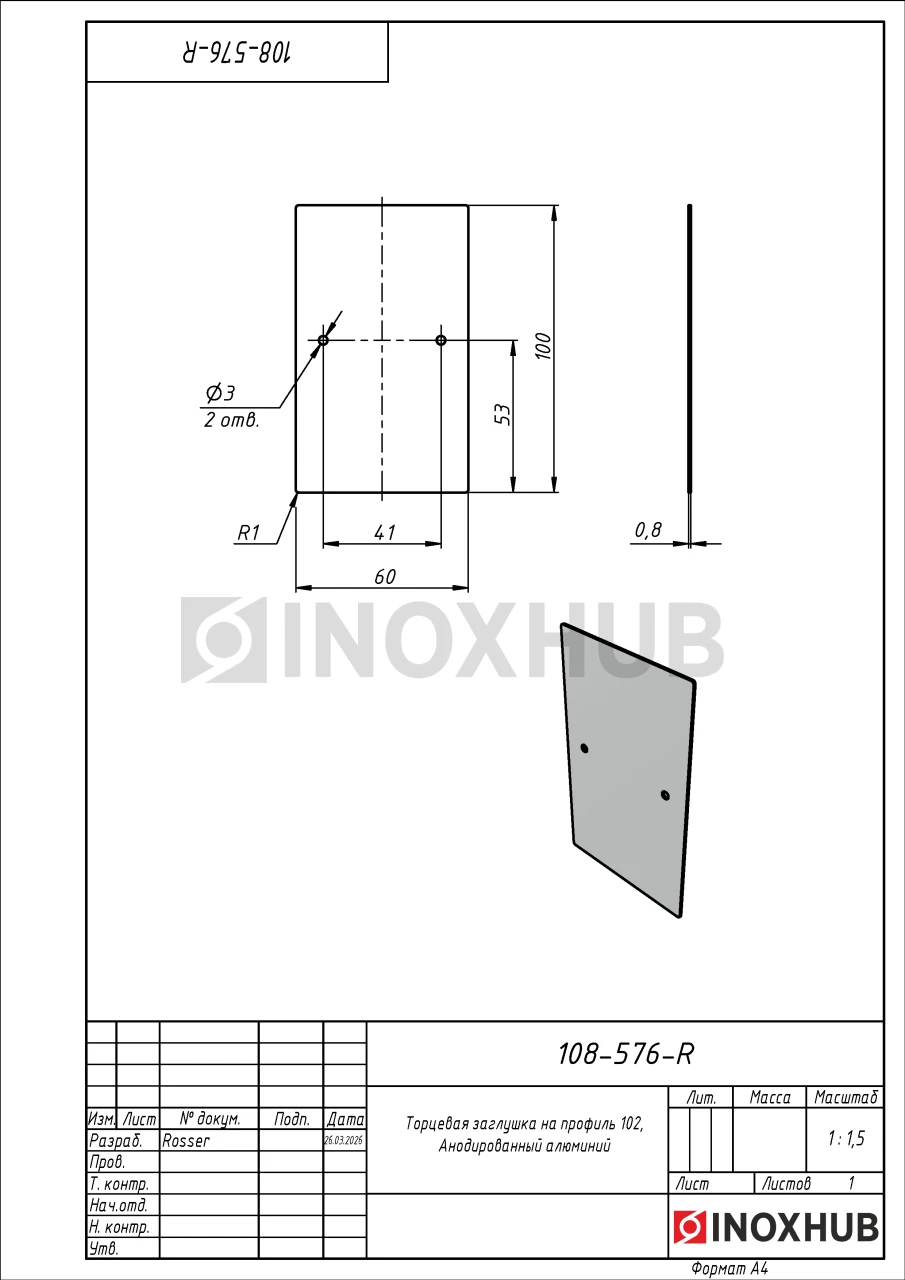 Торцевая заглушка на профиль 102, Анодированный алюминий