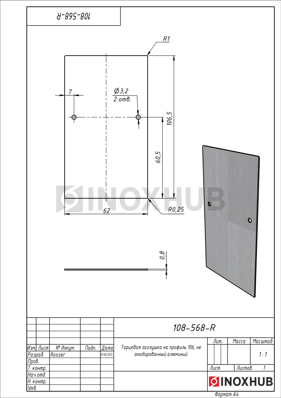 Торцевая заглушка на профиль 106, не анодированный алюминий в продаже. Оперативная доставка со склада в Москве. Все товары соответствуют стандартам качества.