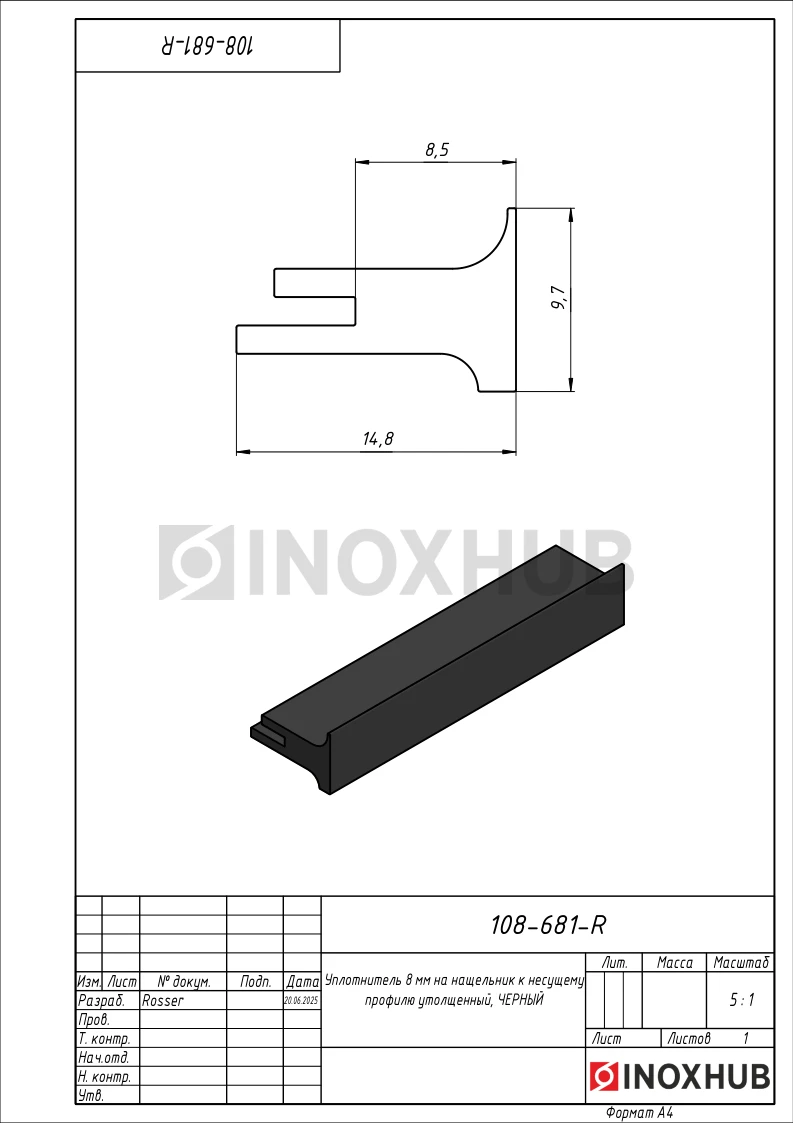 Уплотнитель 8 мм на нащельник к несущему профилю утолщенный, ЧЕРНЫЙ в продаже. Оперативная доставка со склада в Москве. Все товары соответствуют стандартам качества.