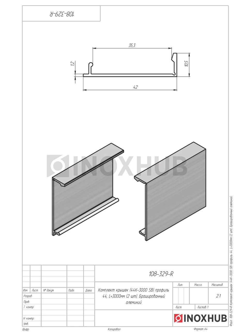 Комплект крышек (44К-3000 SB) профиль 44, L=3000мм (2 шт), Брашированный алюминий в продаже от 68.45 Br/комп. Оперативная доставка со склада в Москве. Все товары соответствуют стандартам качества.