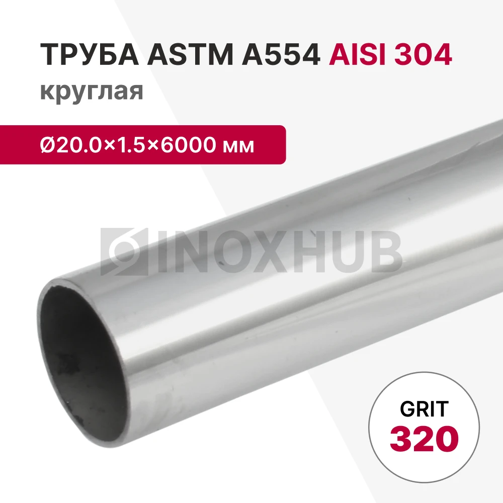 Труба круглая AISI 304, ASTM A554, Ø20.0×1.5×6000 мм, GRIT 320 в продаже. Оперативная доставка со склада в Москве. Все товары соответствуют стандартам качества.