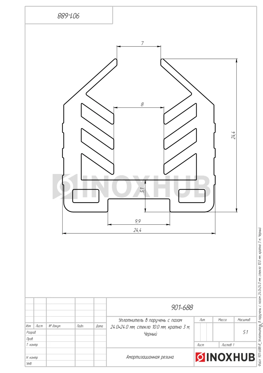 Уплотнитель в поручень с пазом 24.0×24.0 мм, стекло 10.0 мм, кратно 3 м, Черный в продаже. Оперативная доставка со склада в Москве. Все товары соответствуют стандартам качества.
