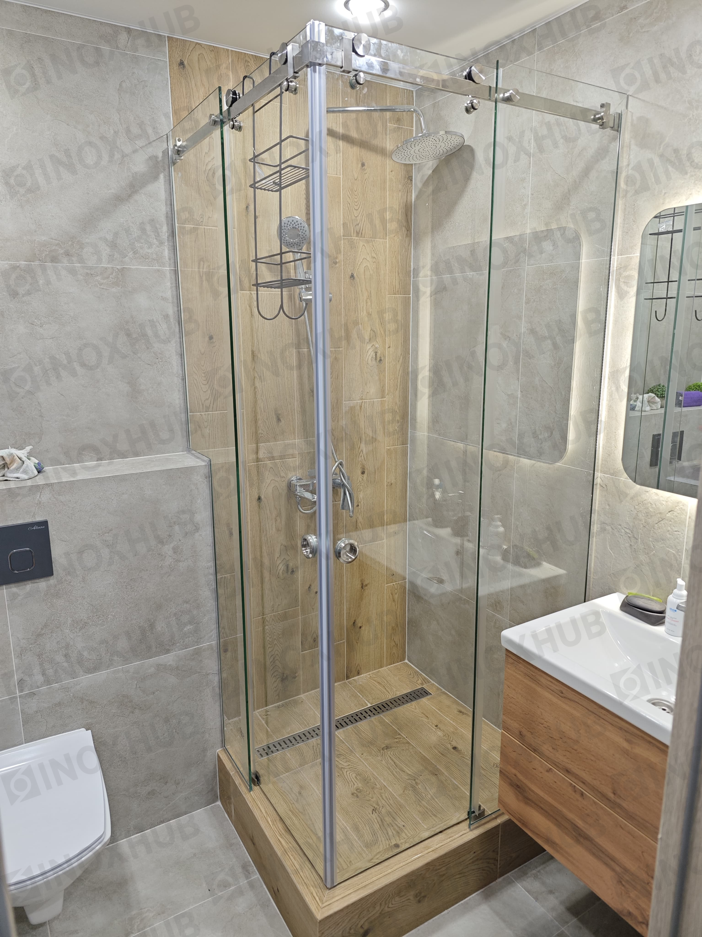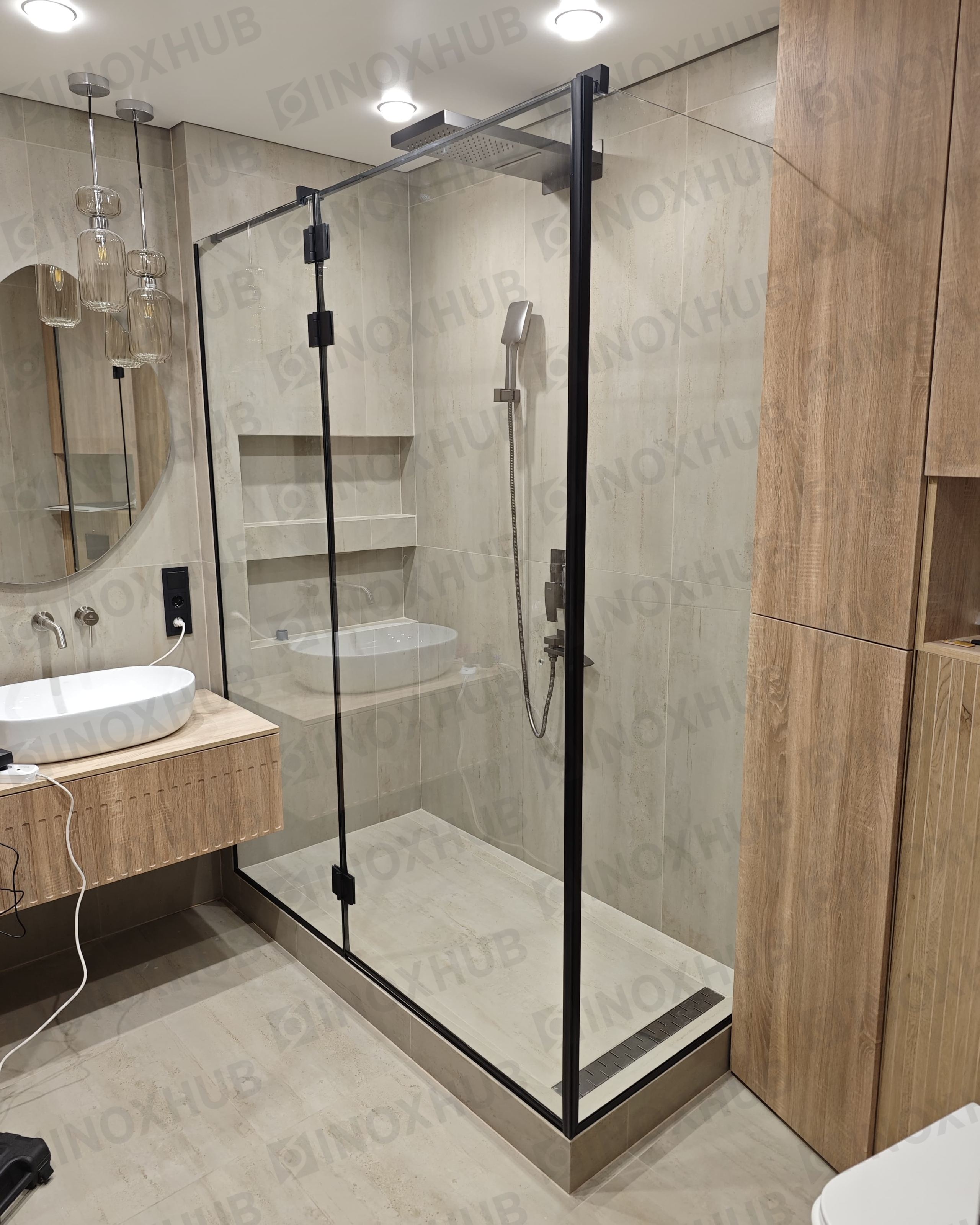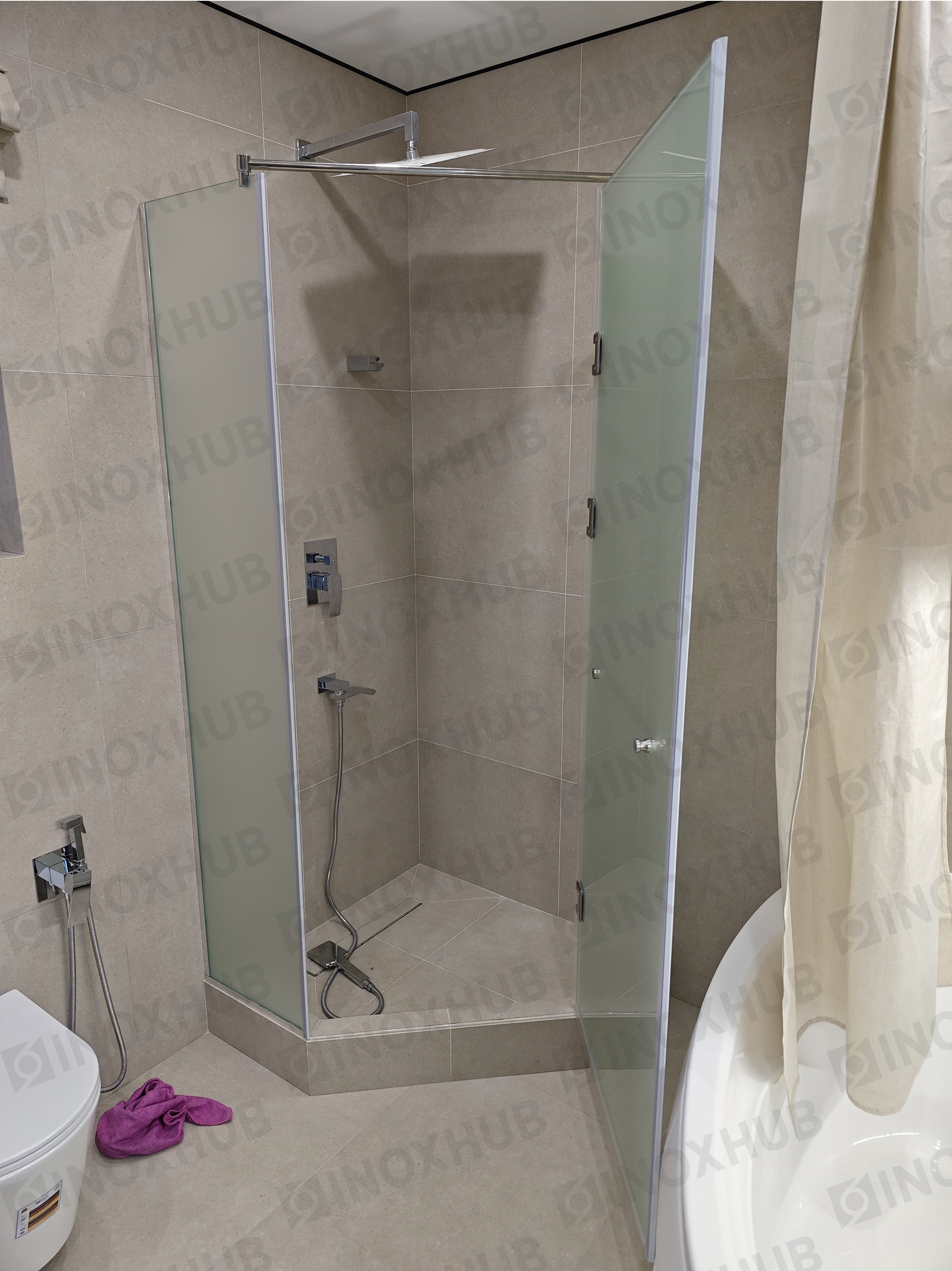 Монтаж душевых кабин из стекла с использованием высококачественной фурнитуры для стекла Inoxhub. Листайте дальше, чтобы увидеть все работы с использованием нашей фурнитуры, а также товары, задействованные в работе
