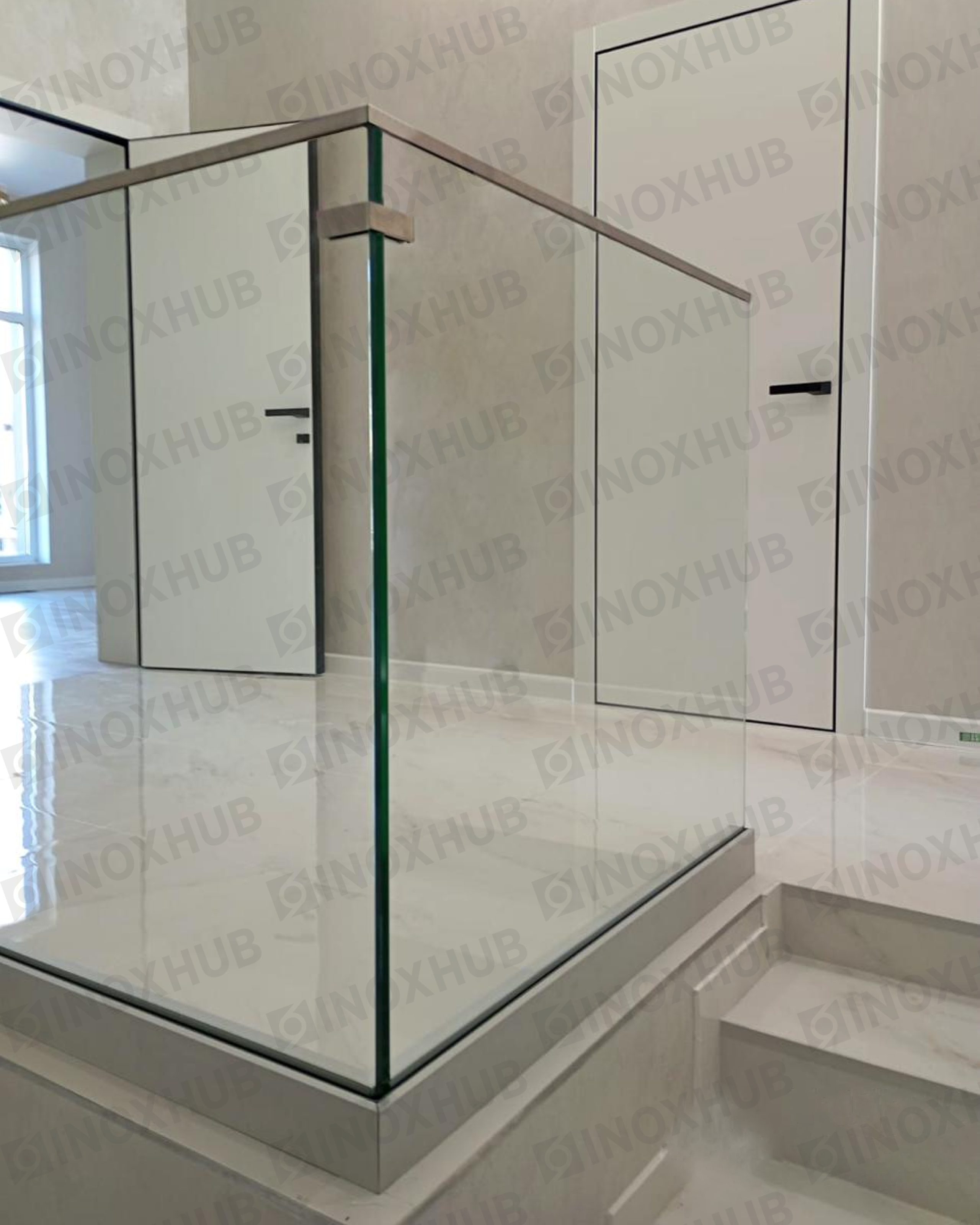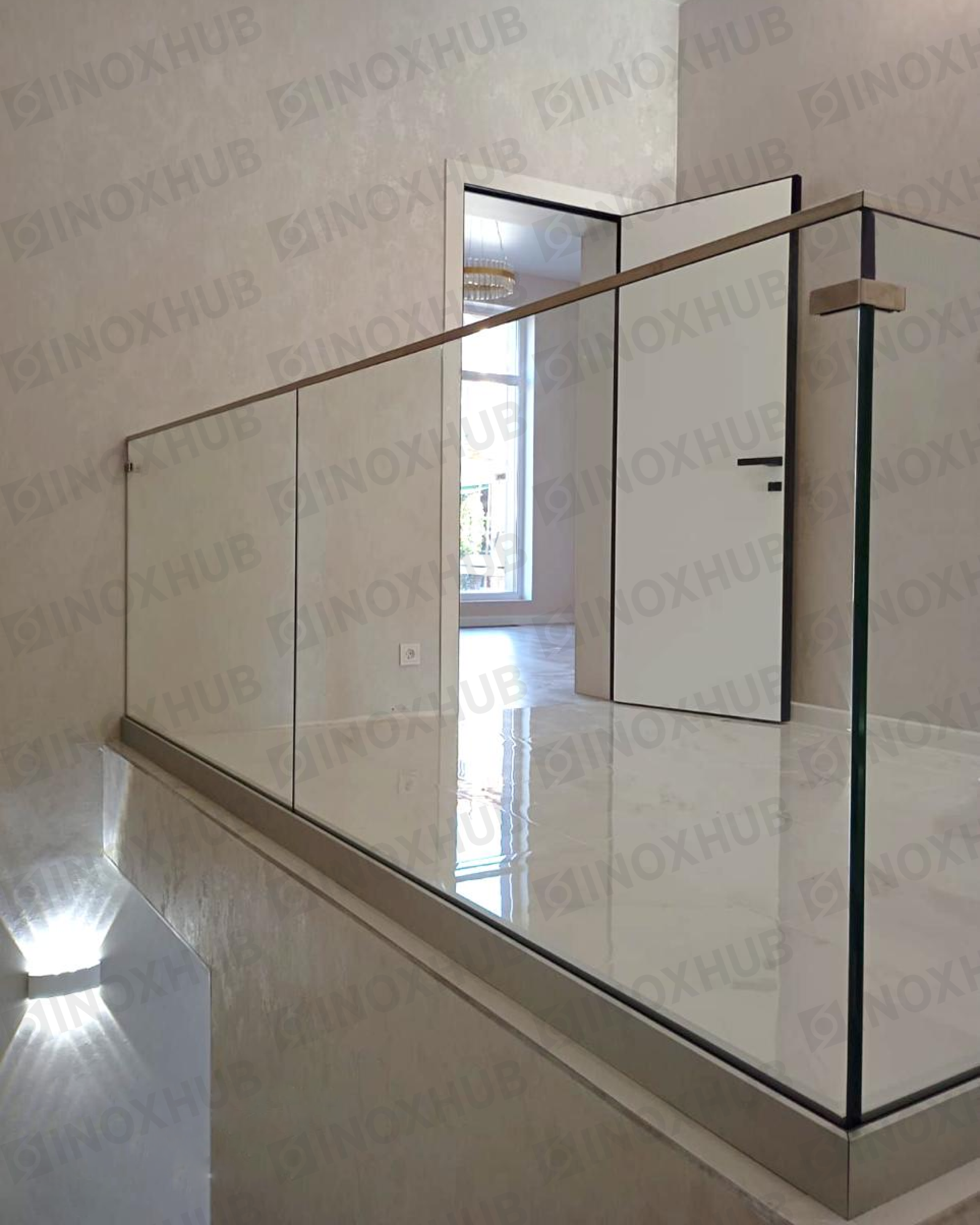 Отличный пример выполненных работ по монтажу стеклянных ограждений в помещении, с использованием премиальной перильной фурнитуры Inoxhub, которая обеспечивает долговечную работоспособность, эстетичный внешний вид, и наивысшую меру безопасности конструкции.