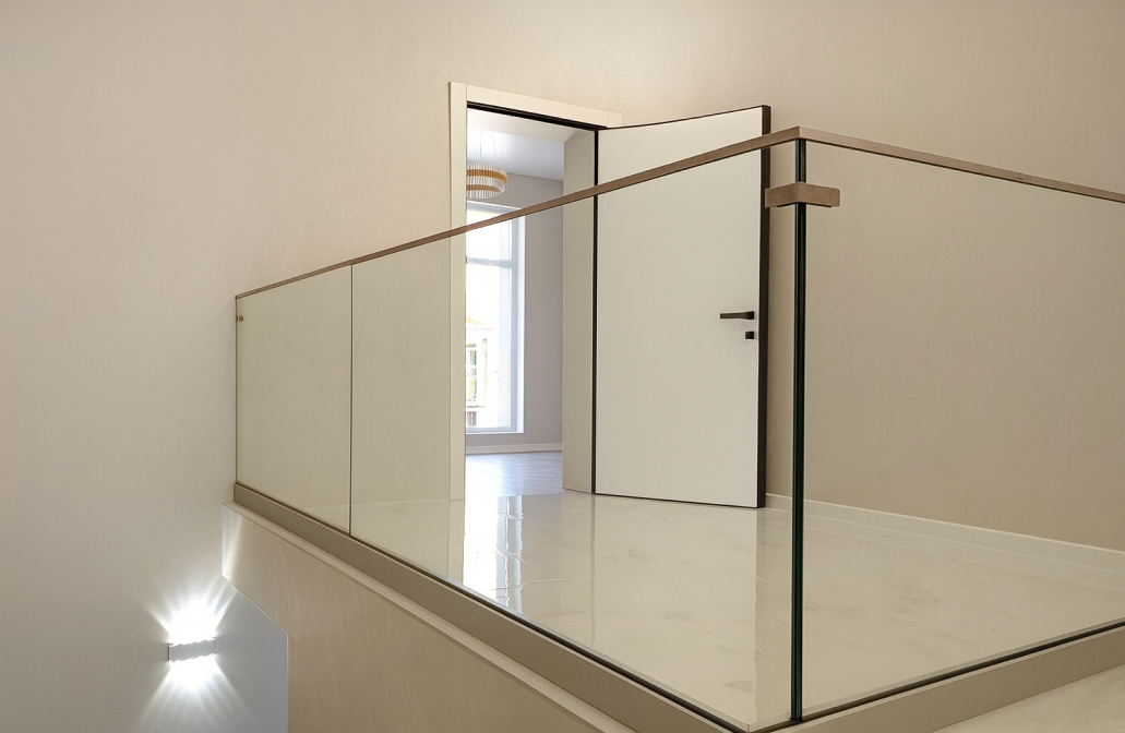 • Пример современного оформления стеклянного ограждения в помещении