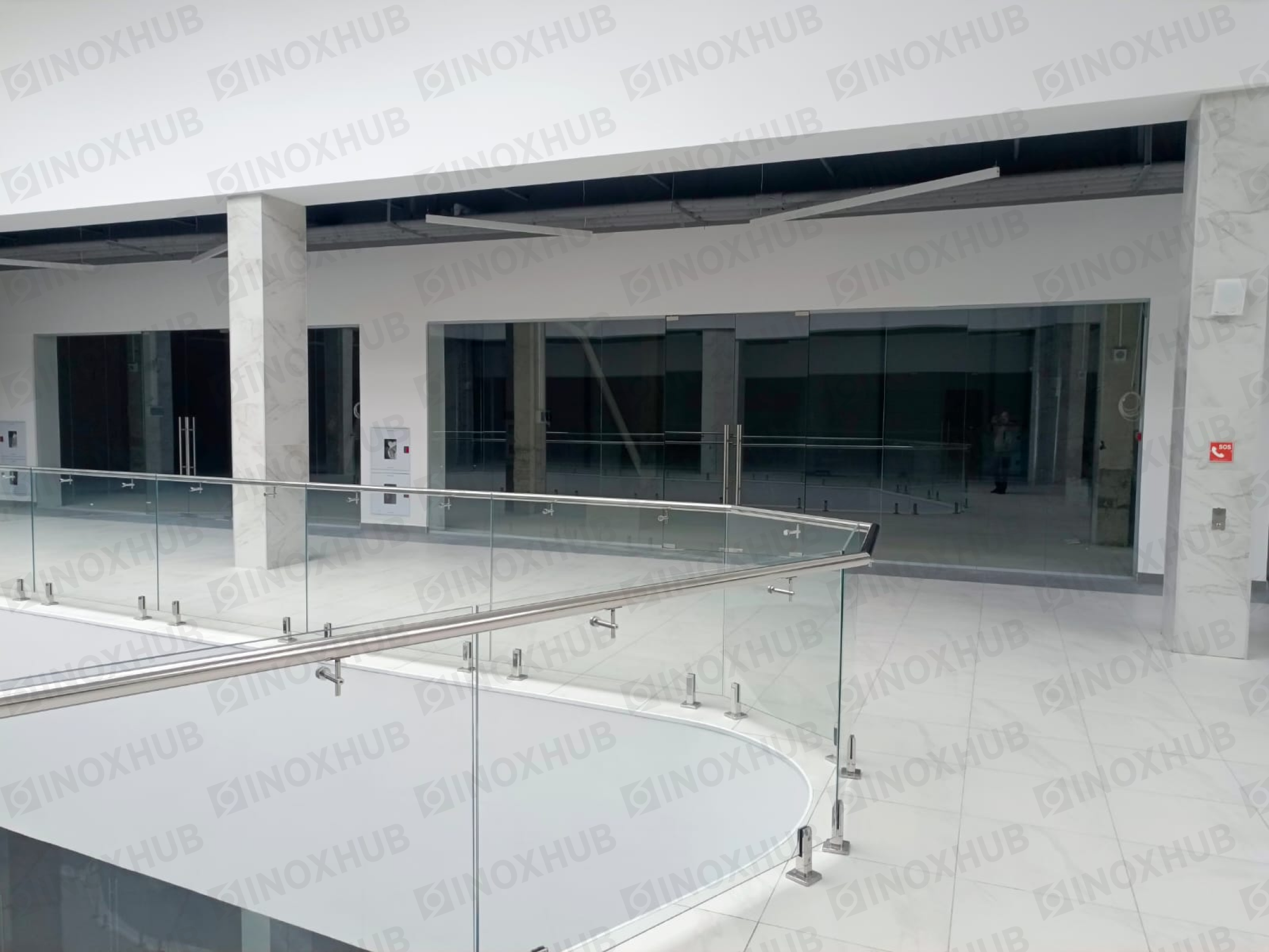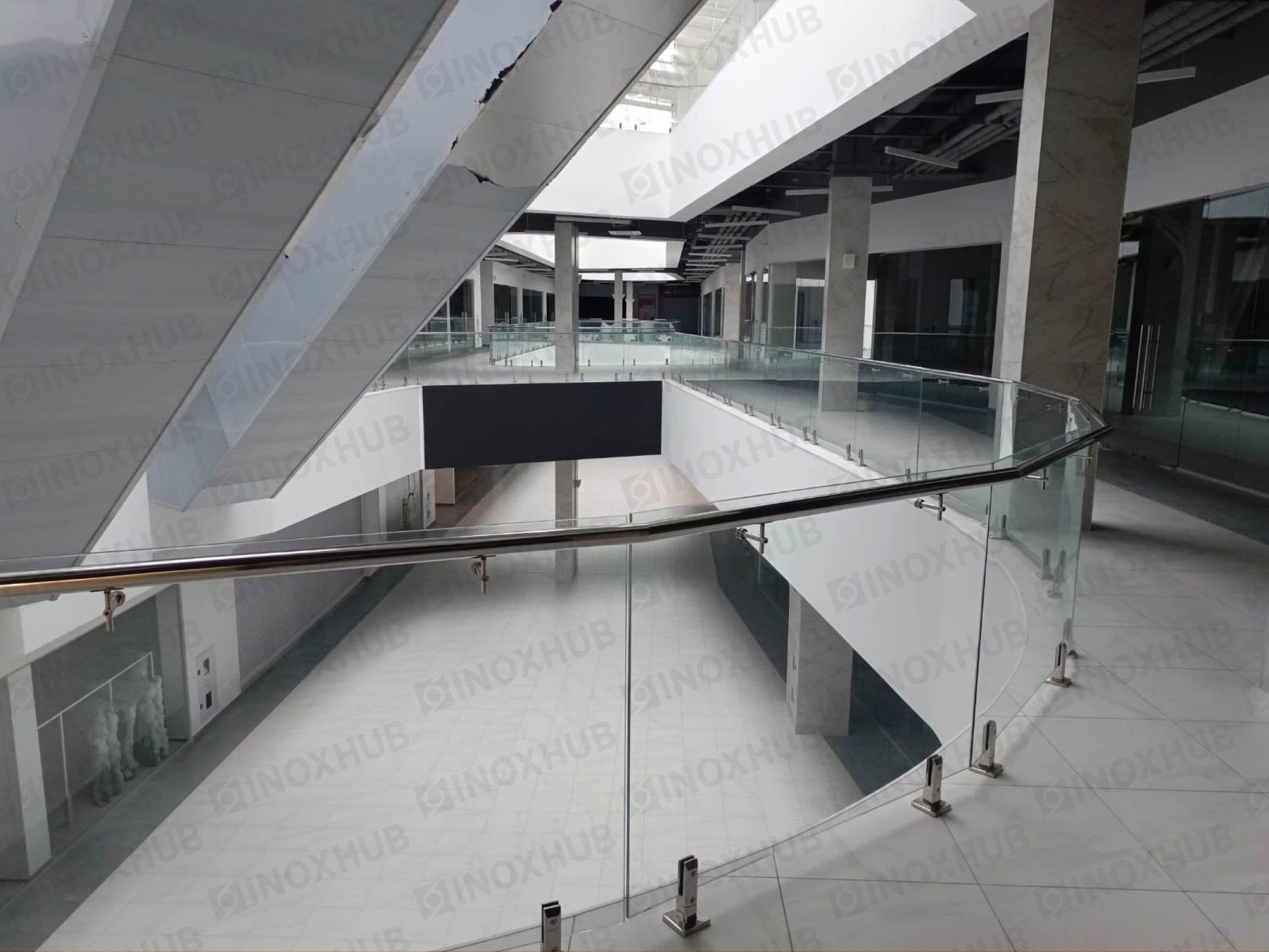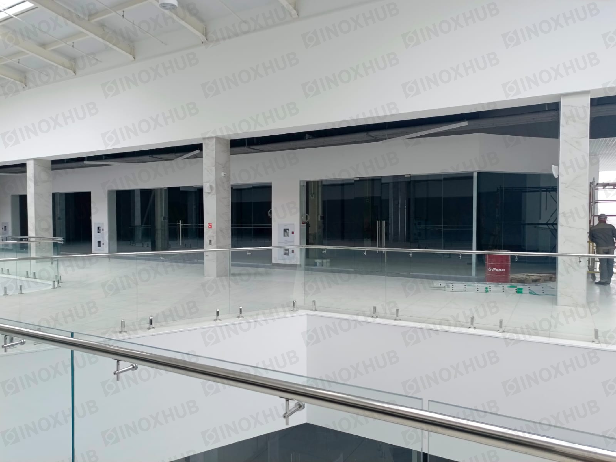Сборка и монтаж стеклянных ограждений в ТЦ, с использованием премиальной перильной фурнитуры Inoxhub. Листайте дальше, чтобы увидеть все работы с использованием нашей фурнитуры, а также товары, задействованные в работе