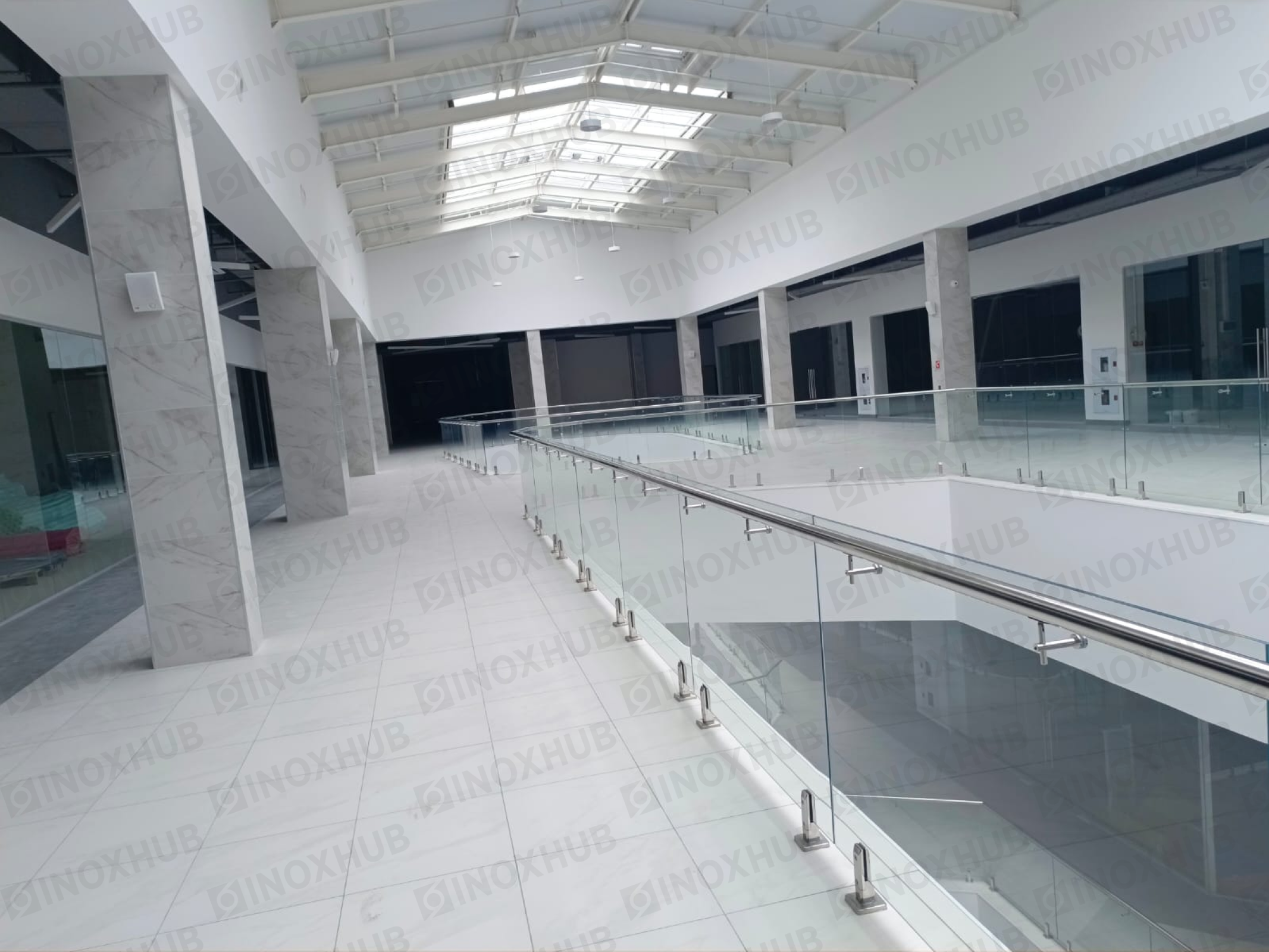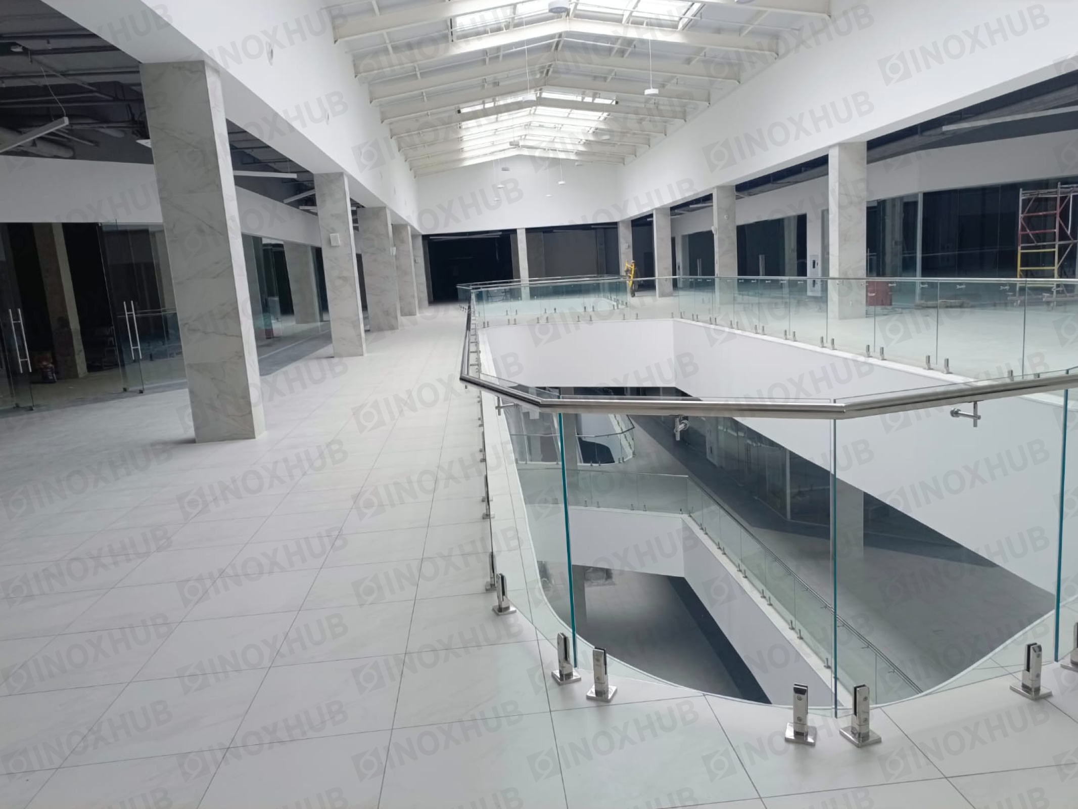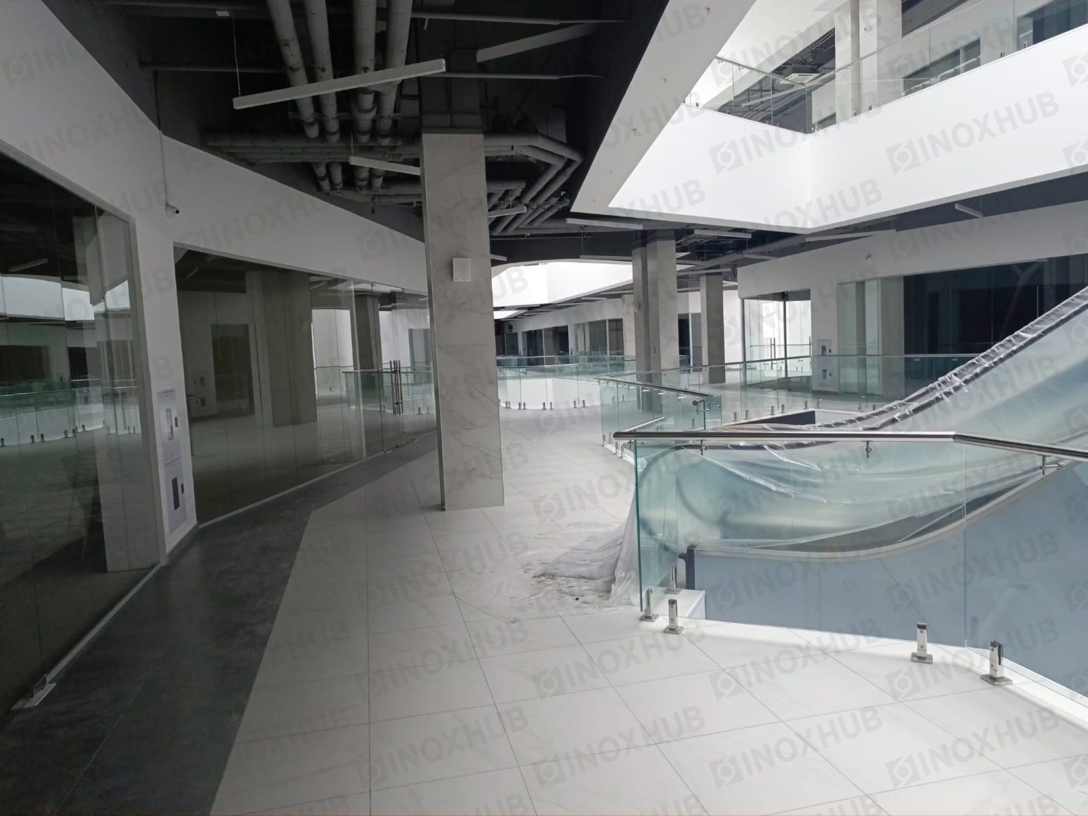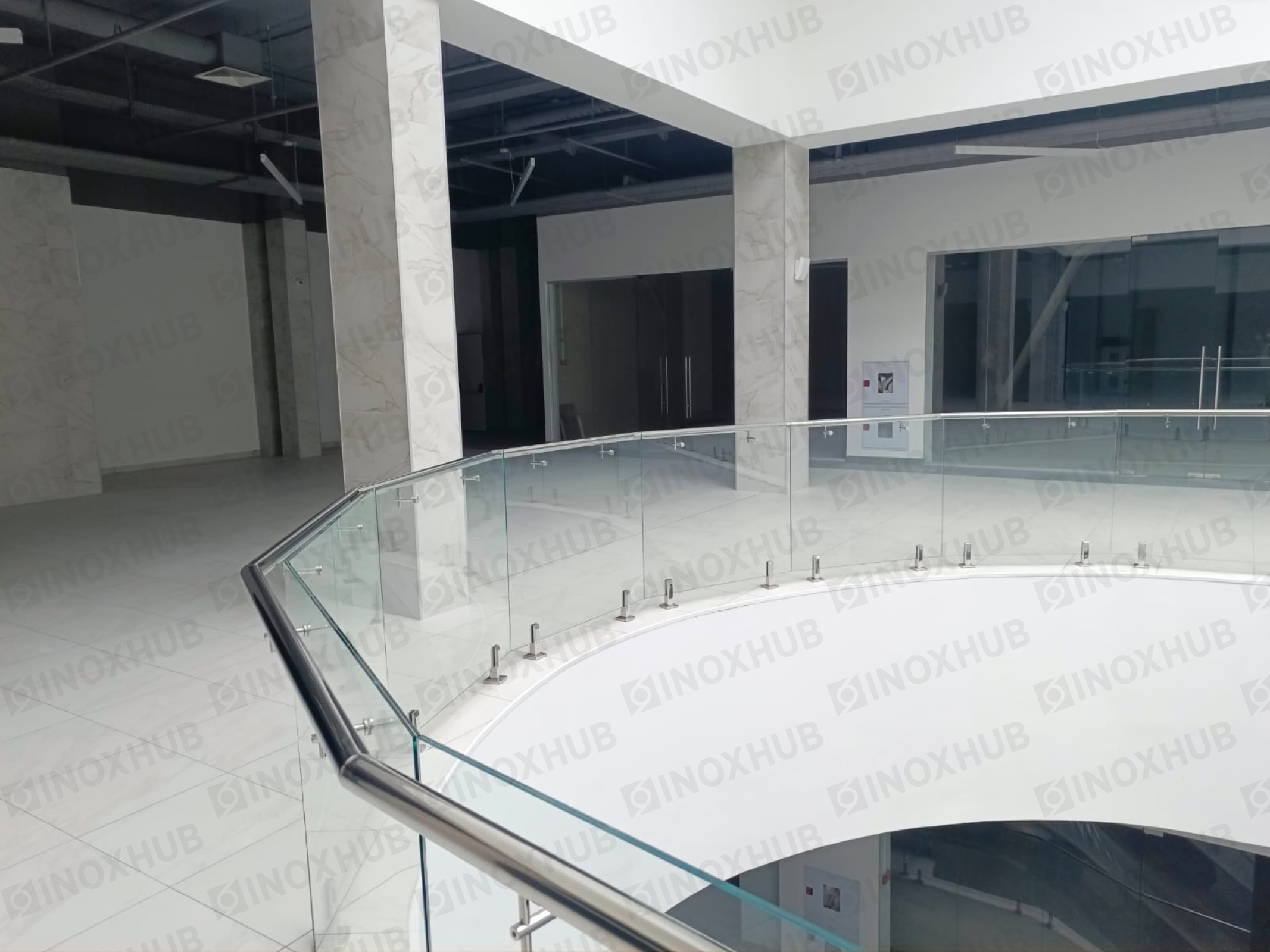 Сборка и монтаж стеклянных ограждений в ТЦ, с использованием премиальной перильной фурнитуры Inoxhub. Листайте дальше, чтобы увидеть все работы с использованием нашей фурнитуры, а также товары, задействованные в работе